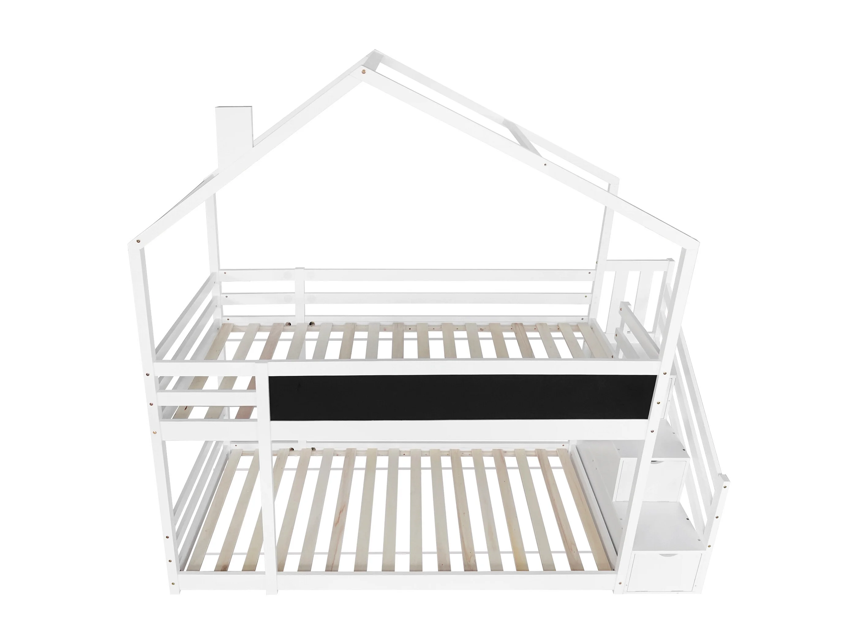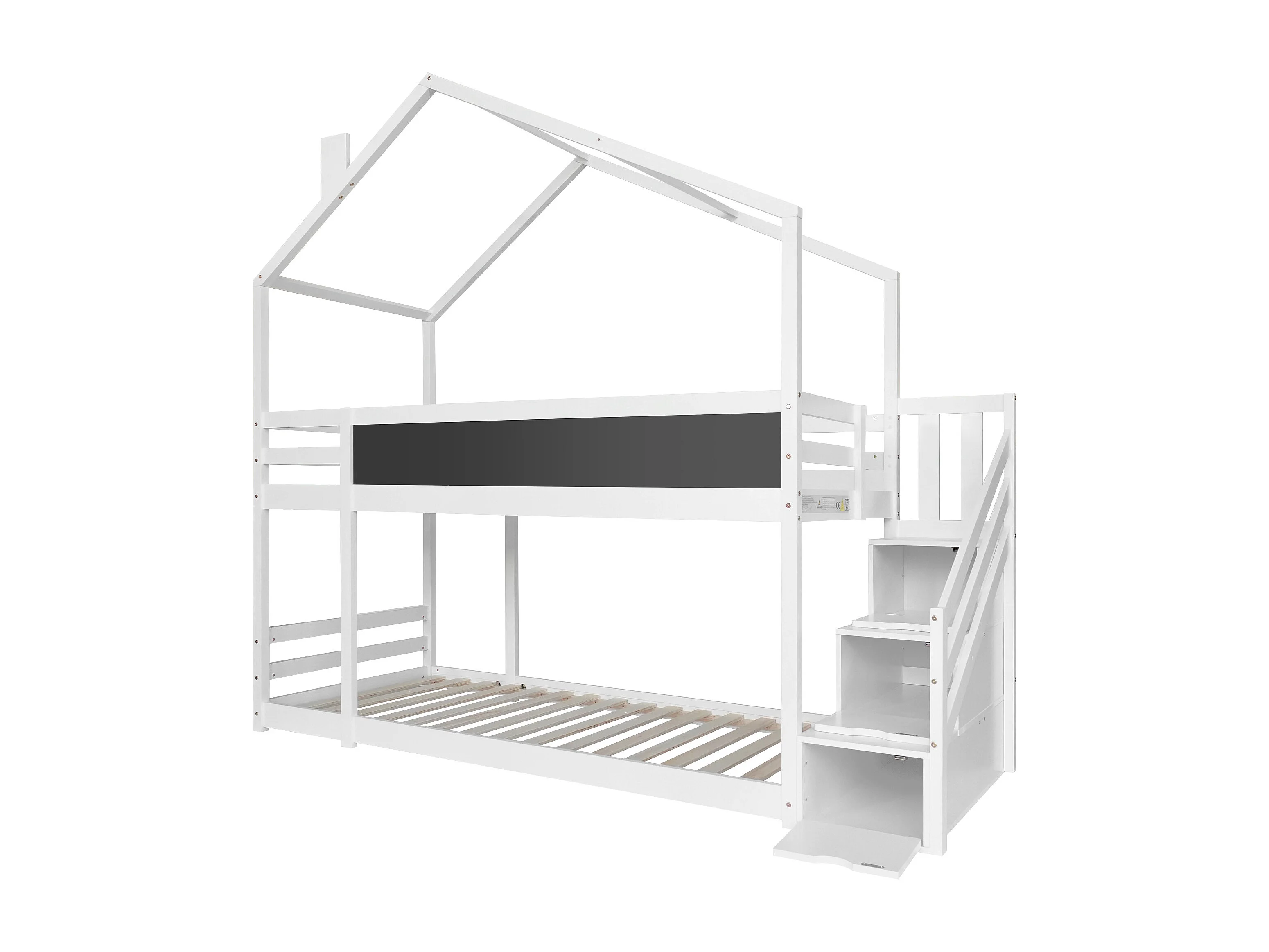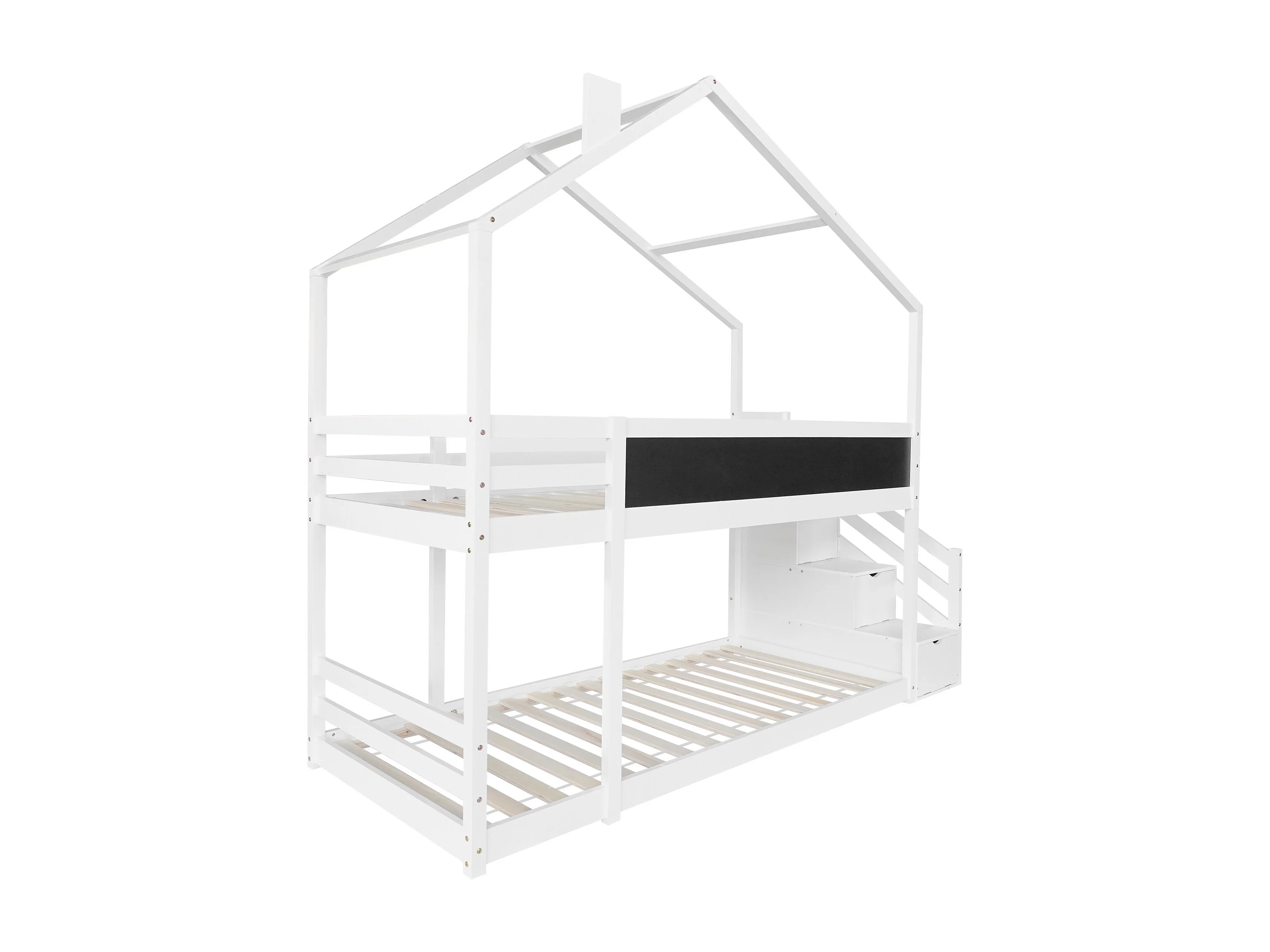 Lit superpsé 90x200 cm lit enfant 2 places avec 3 tiroirs et 1 tableau noir - bois de pin - blanc - sans matelas