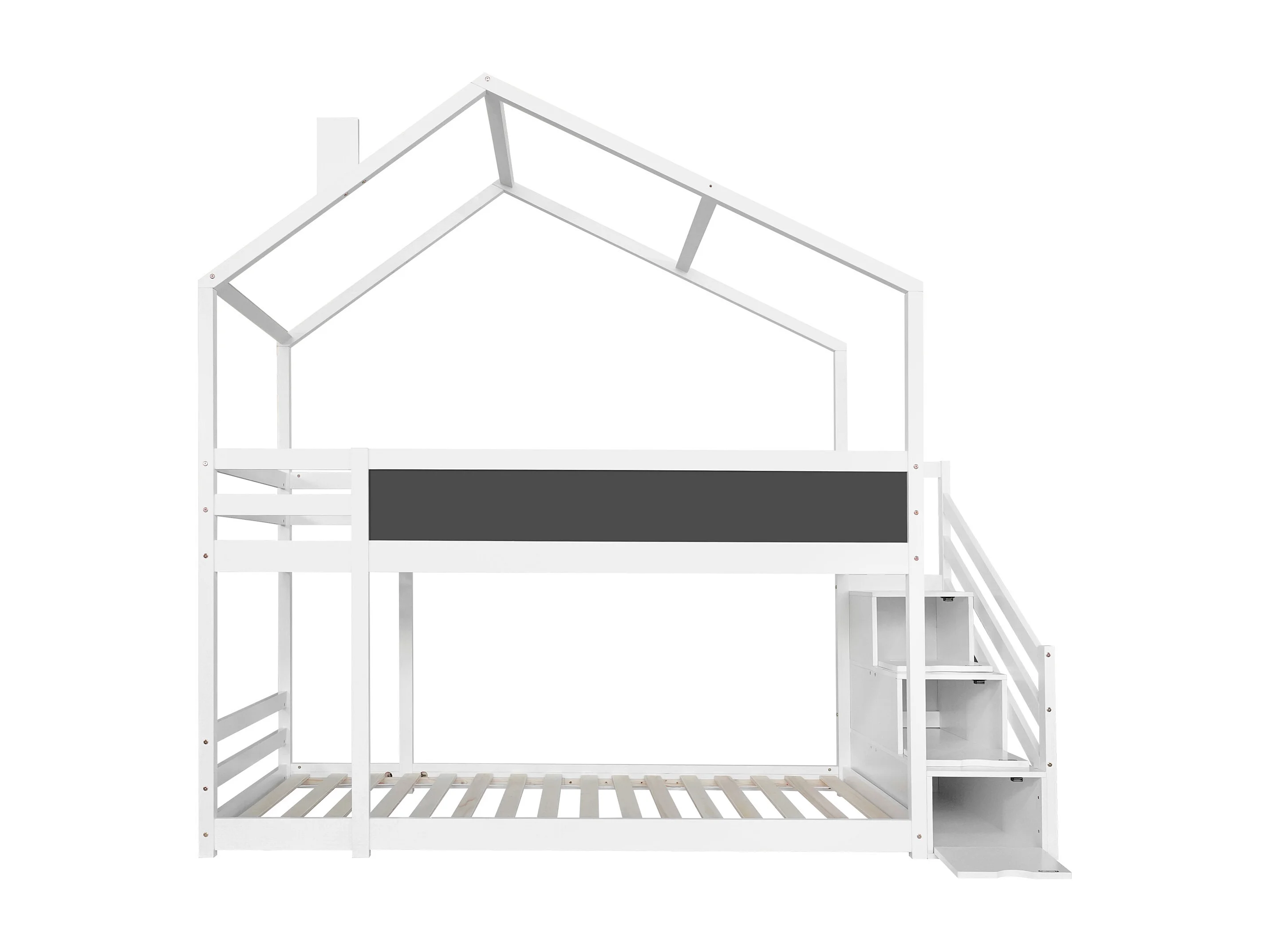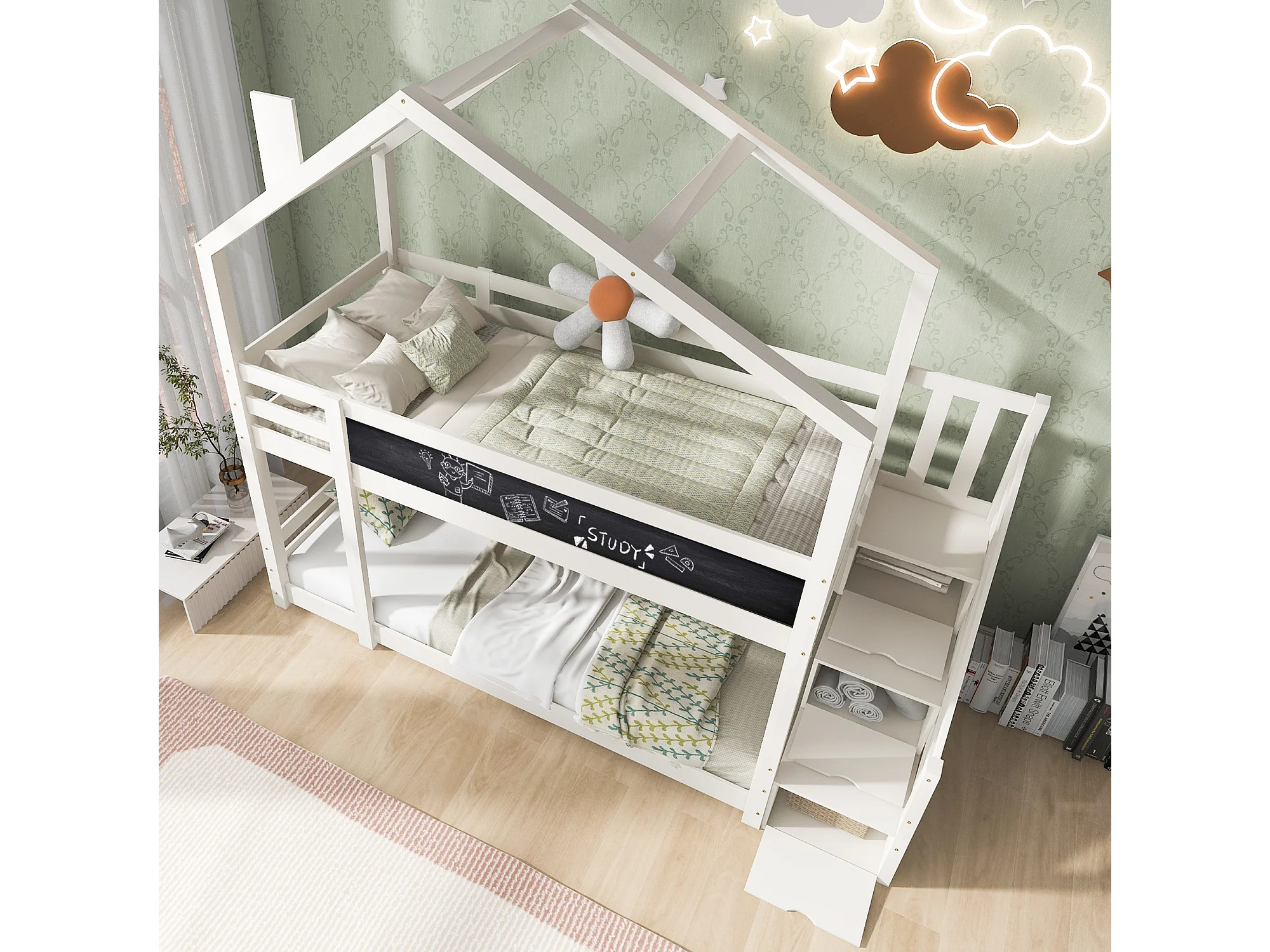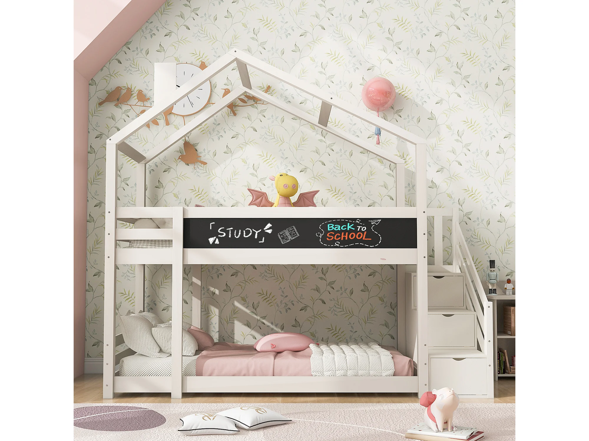 Lit superpsé 90x200 cm lit enfant 2 places avec 3 tiroirs et 1 tableau noir - bois de pin - blanc - sans matelas