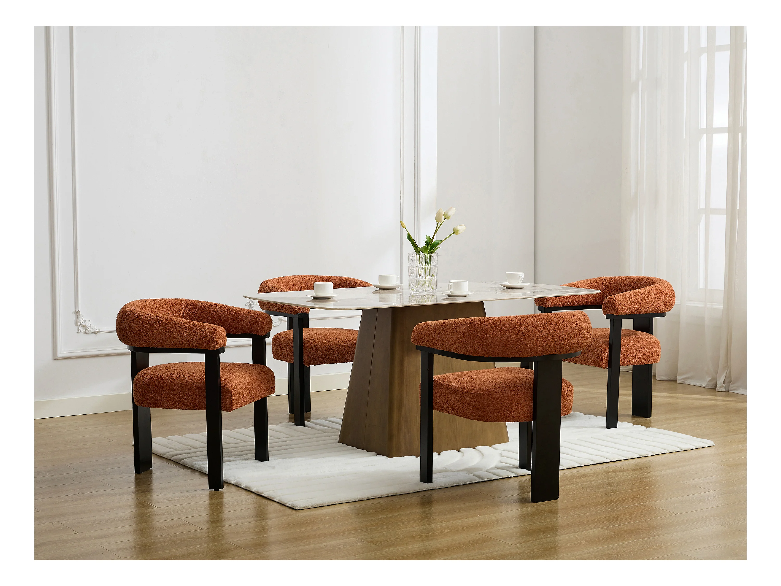 Lot de 6 chaises avec accoudoirs en tissu bouclette et bois d'hévéa noir - Terracotta - LIVELIA de Pascal MORABITO