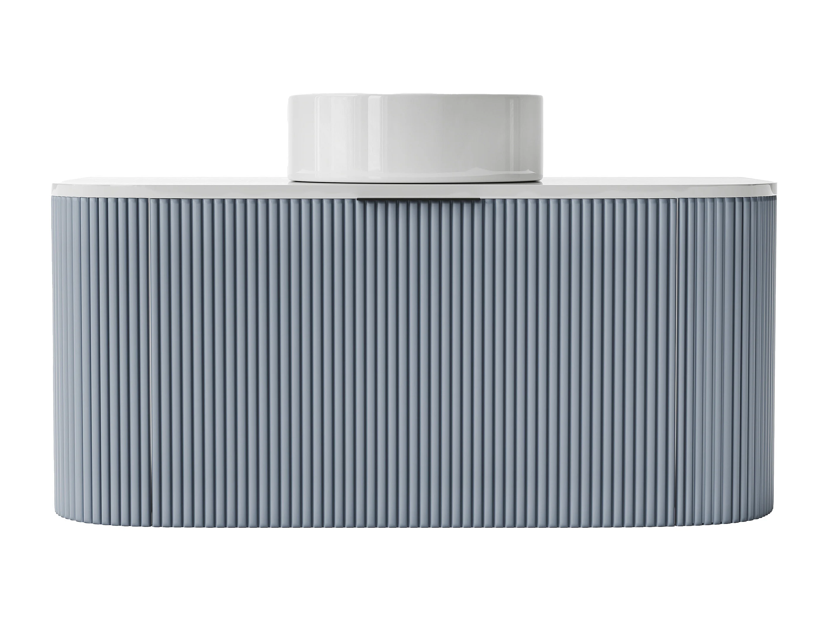 Meuble de salle de bain suspendu strié avec vasque à poser - Bleu mat - 100 cm - LOMERI