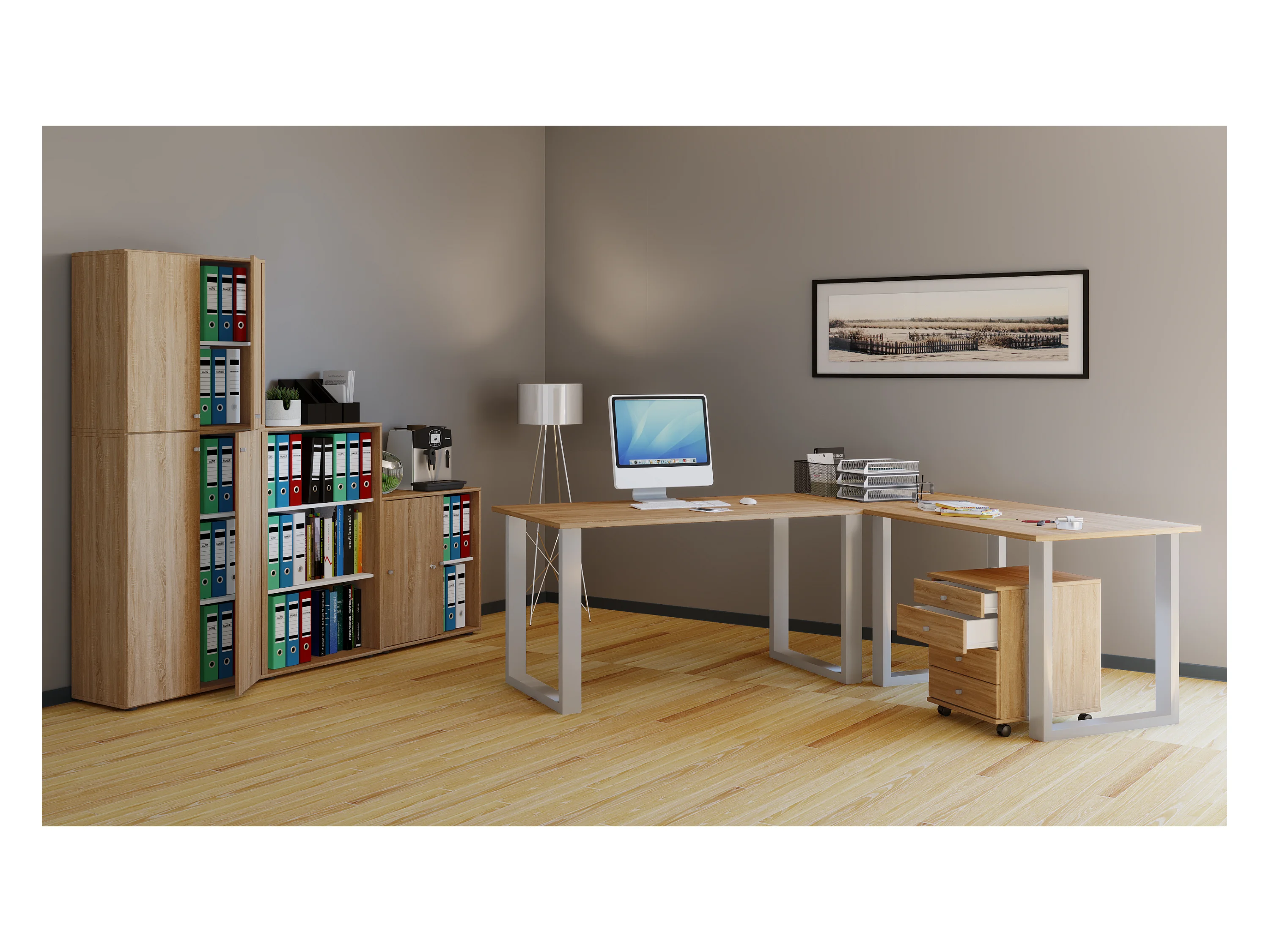 Desk Lona Silver / Sonoma oak H. 76 x W. 190 x D. 160 cm