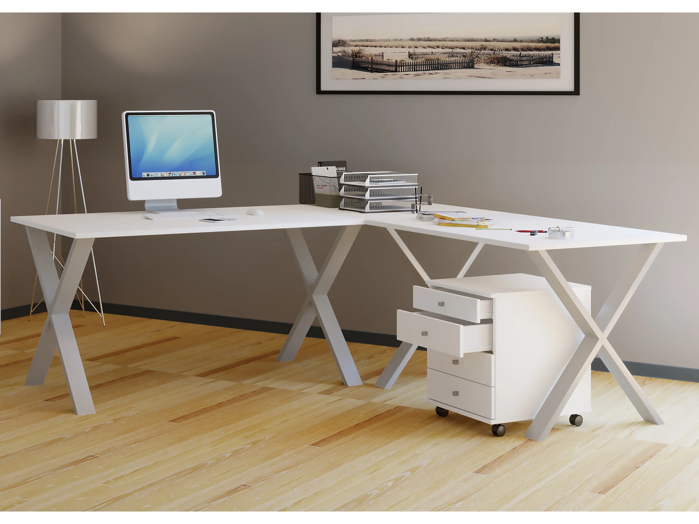 Desk Lona Silver / White H. 76 x W. 190 x D. 190 cm