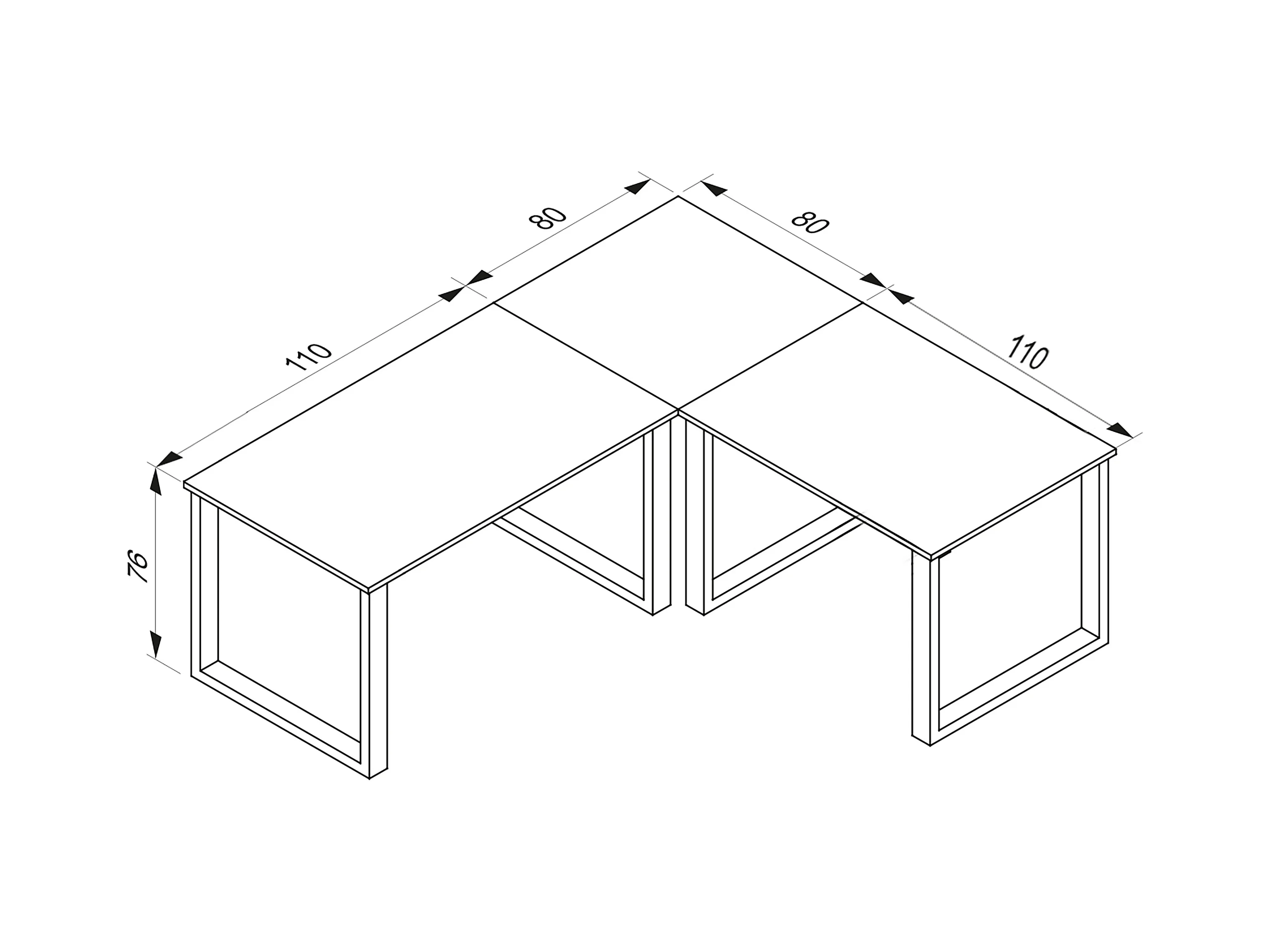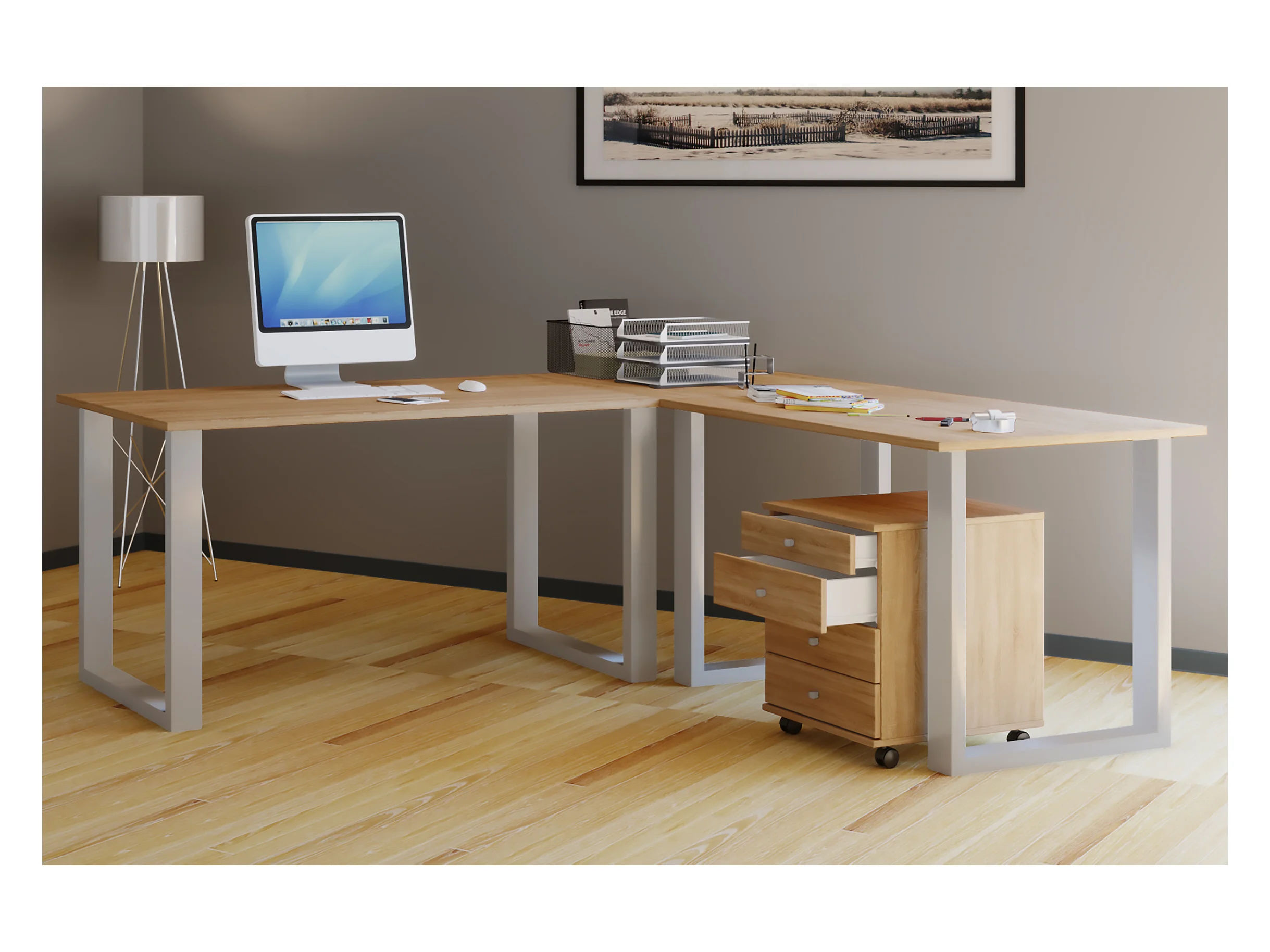 Desk Lona Silver / Sonoma oak H. 76 x W. 190 x D. 190 cm