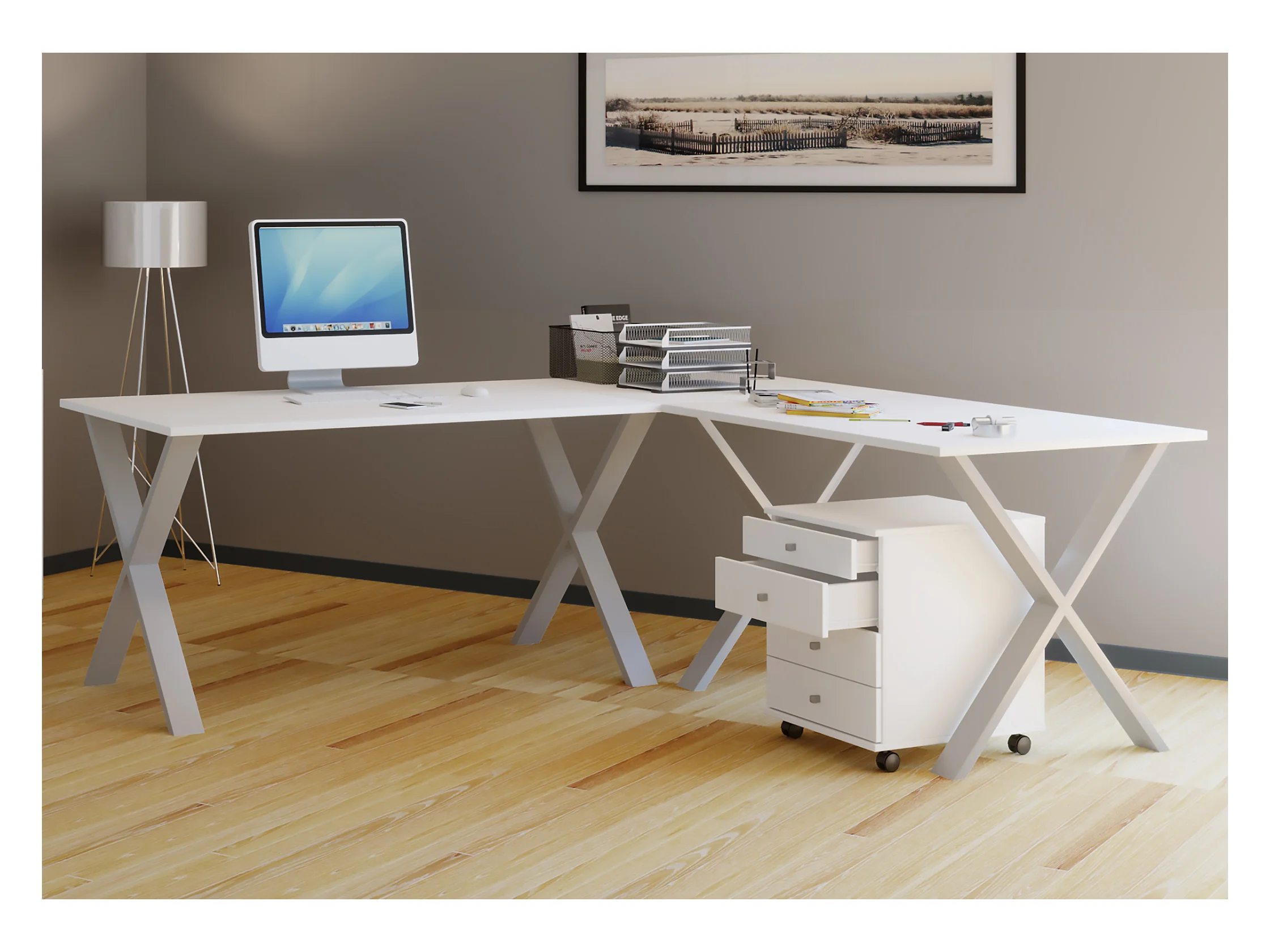 Desk Lona Silver / White H. 76 x W. 220 x D. 190 cm