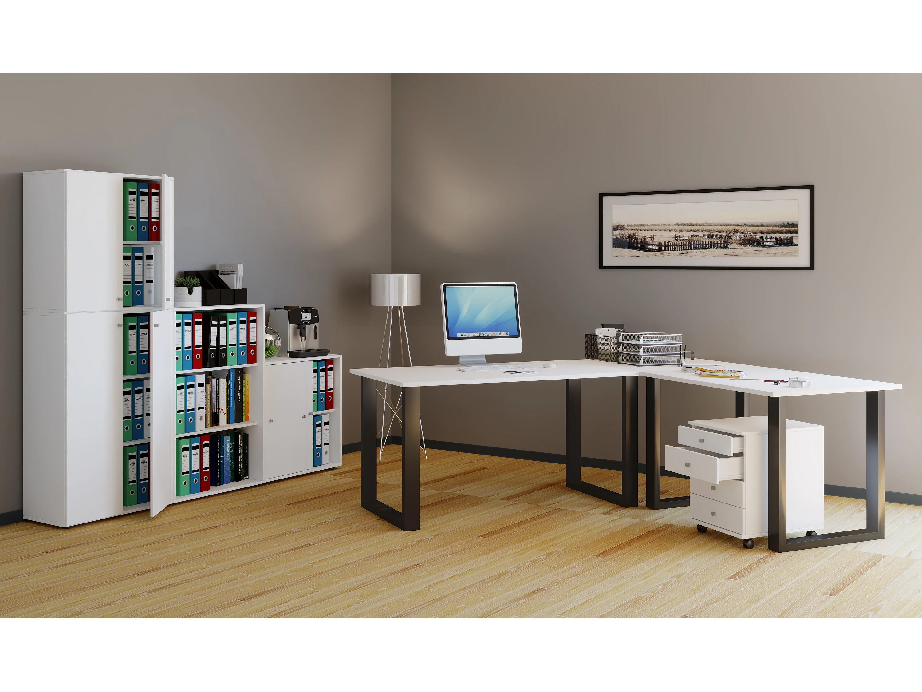 Desk Lona Black / White H. 76 x W. 220 x D. 220 cm