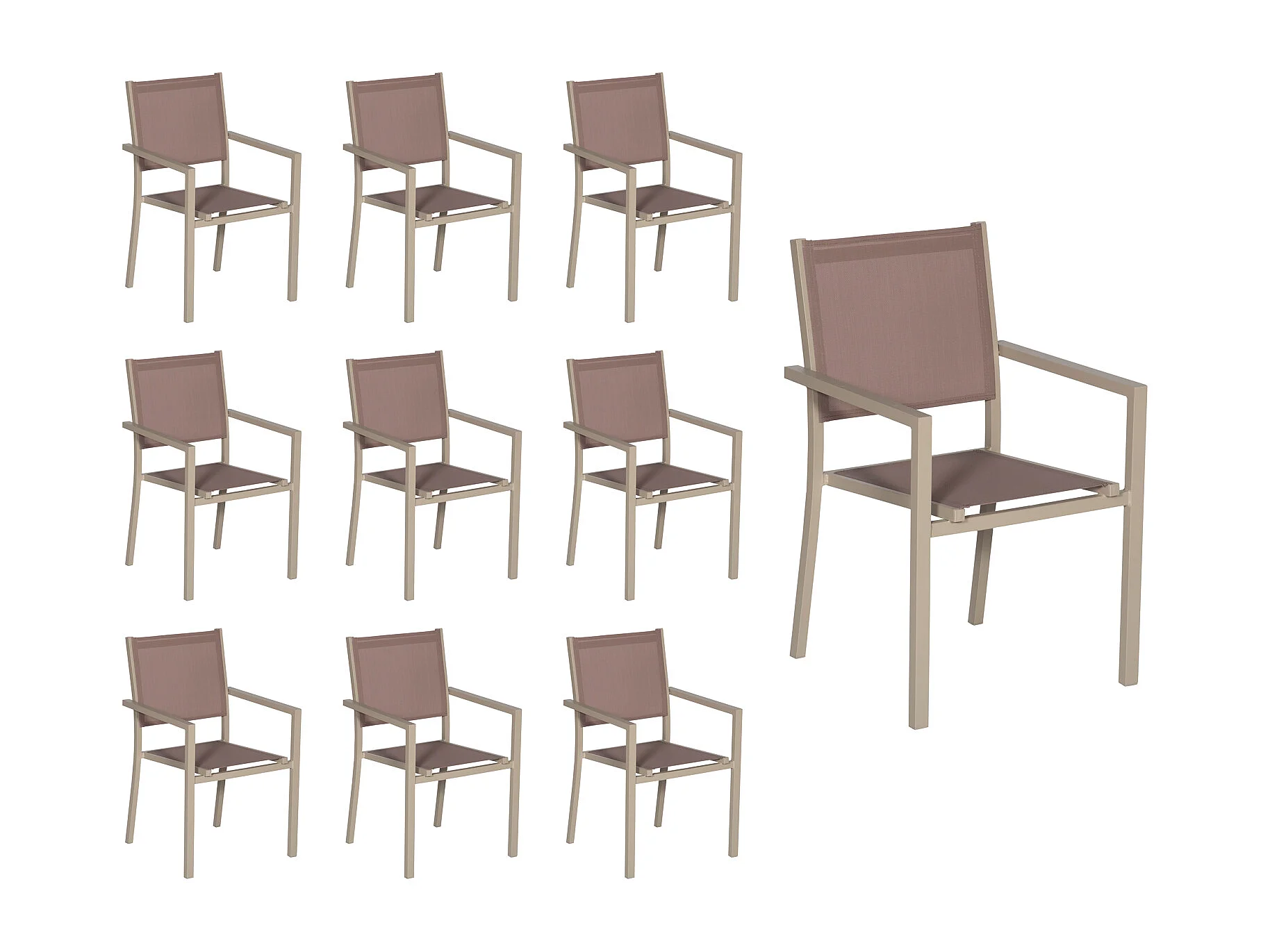 Lot de 10 chaises en aluminium taupe - textilène taupe