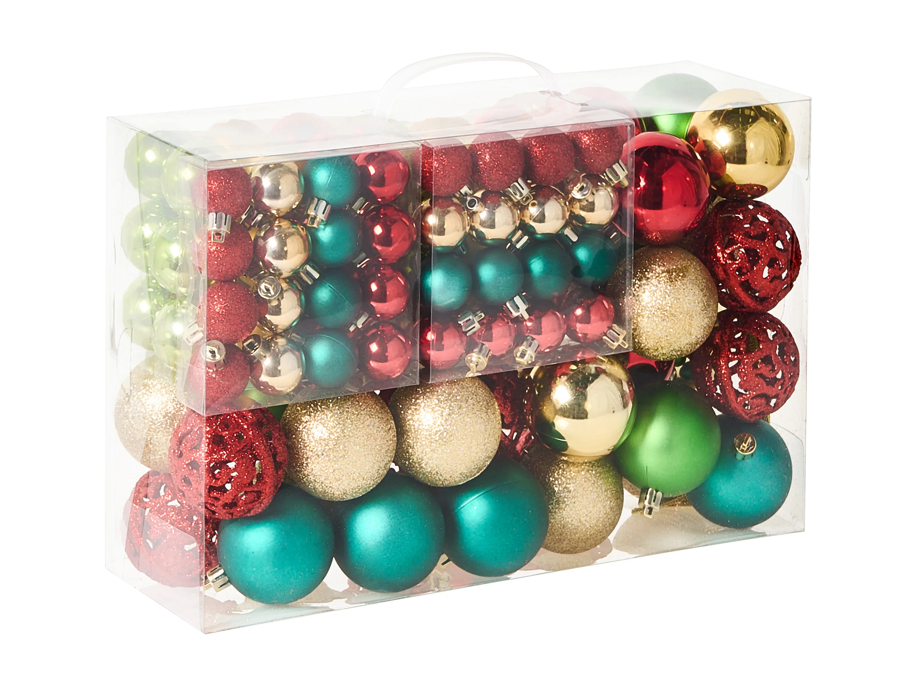 Ensemble de boules de Noël 112 pcs rouge vert doré polystyrène