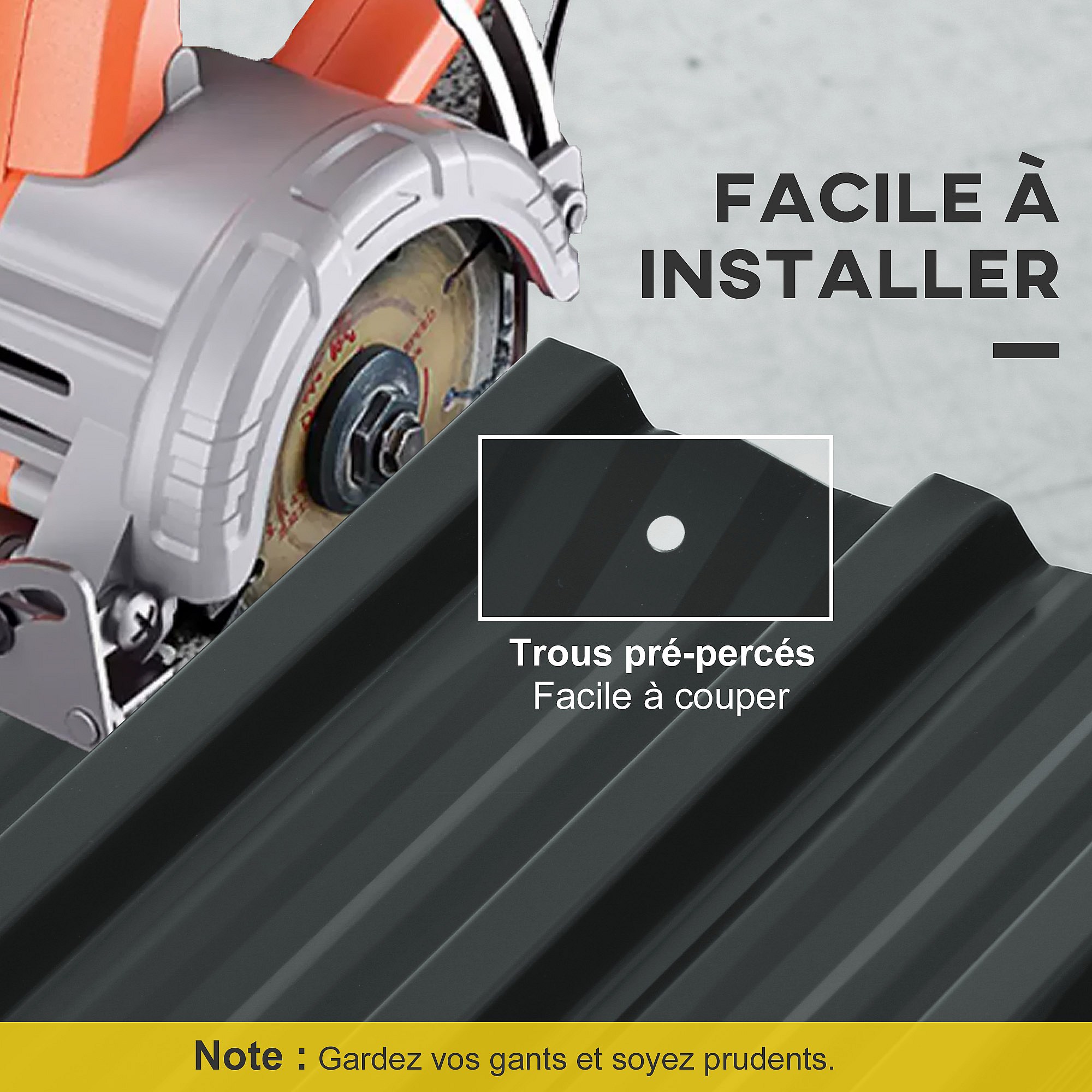 Lot de 12 panneaux - dim. 129L x 45l cm - tôle acier ondulé anthracite