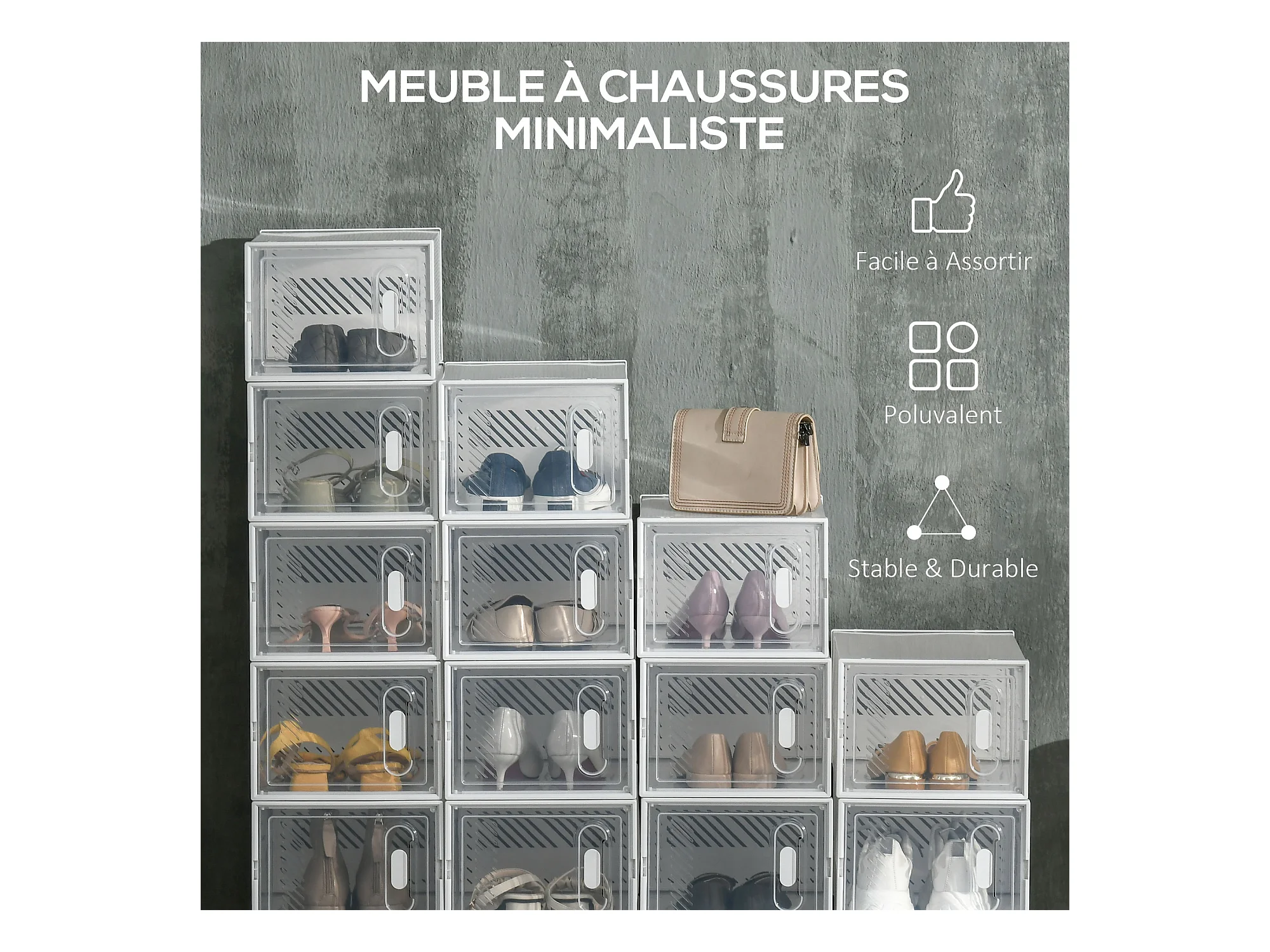 Lot de 12 Boîtes à Chaussures Transparentes avec couvercle