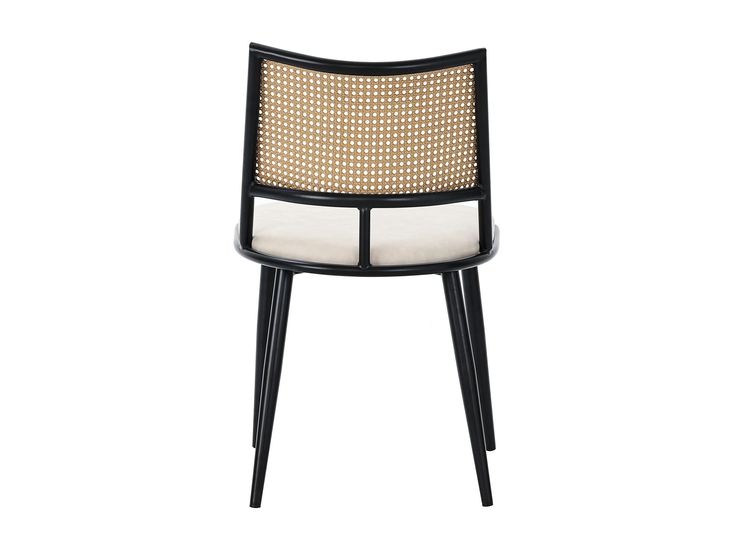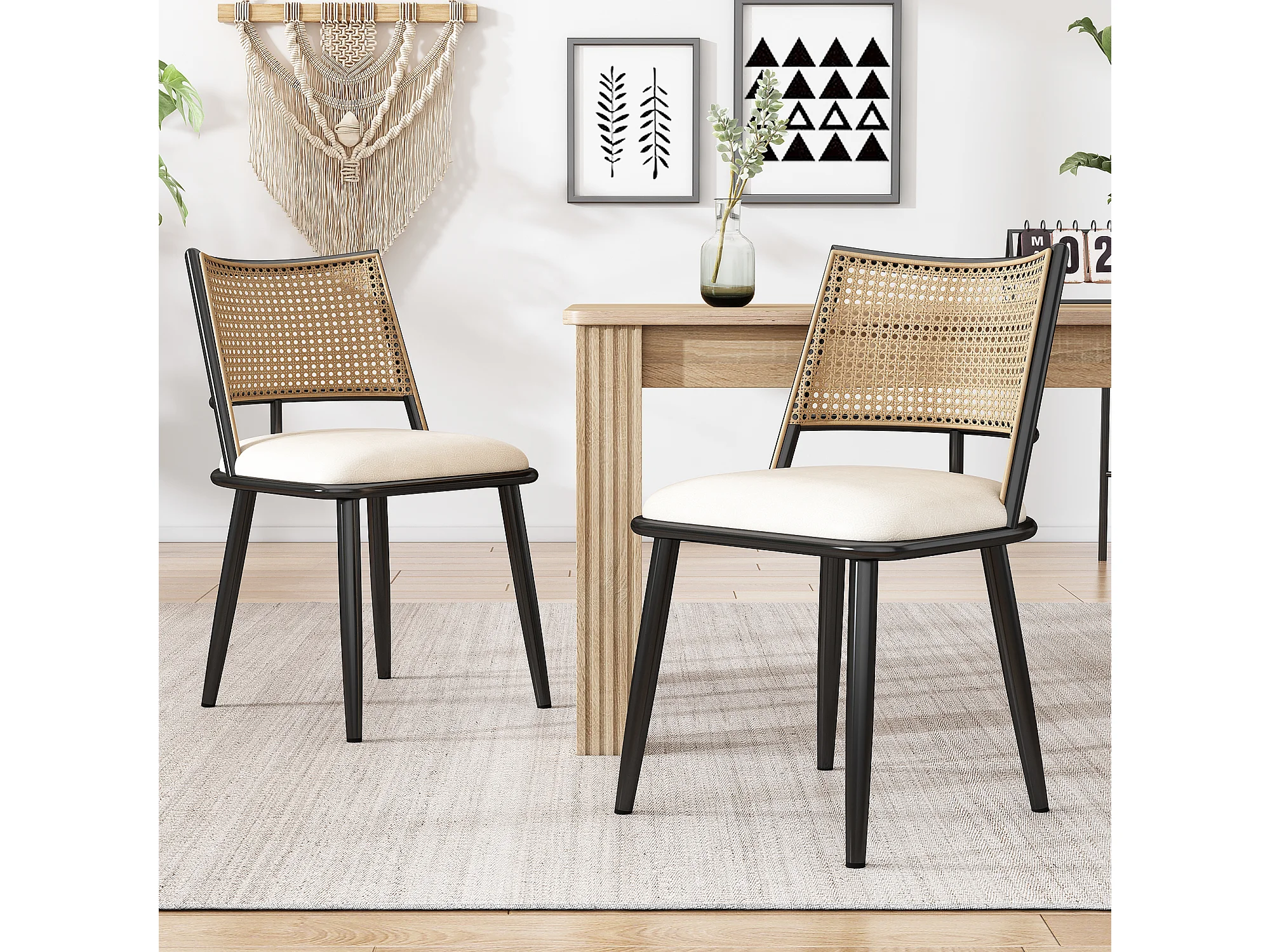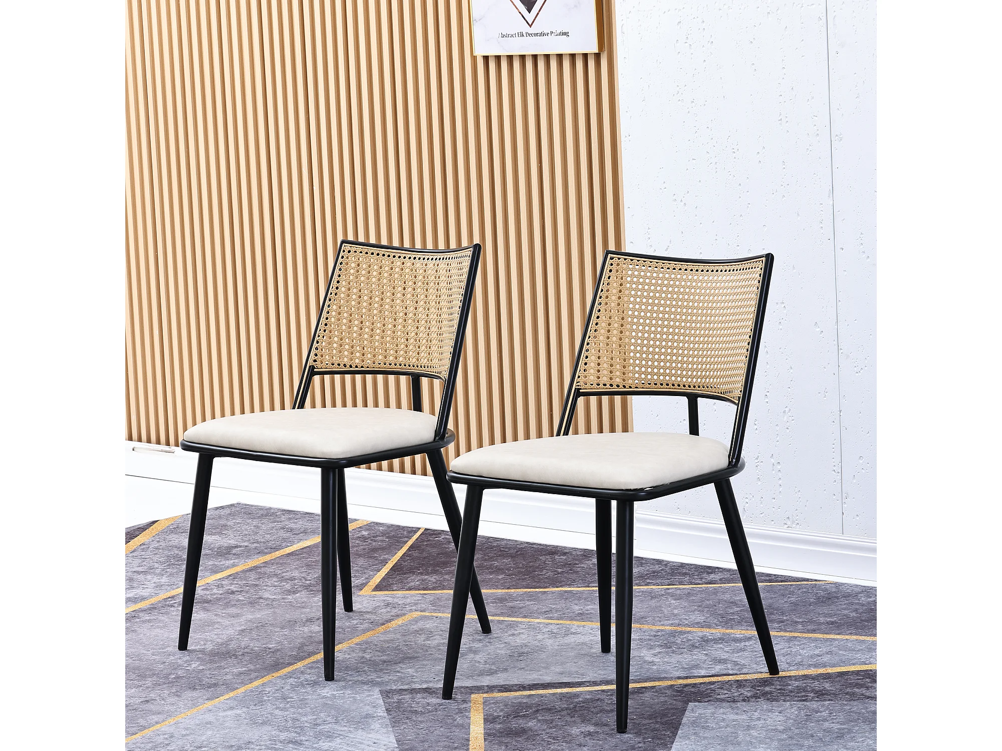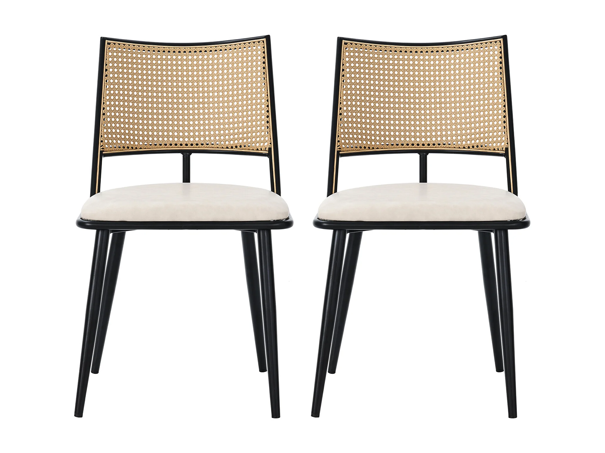 Lot de 2 chaises en rotin noir, assise en PU, légères, dossier aéré, pieds en métal