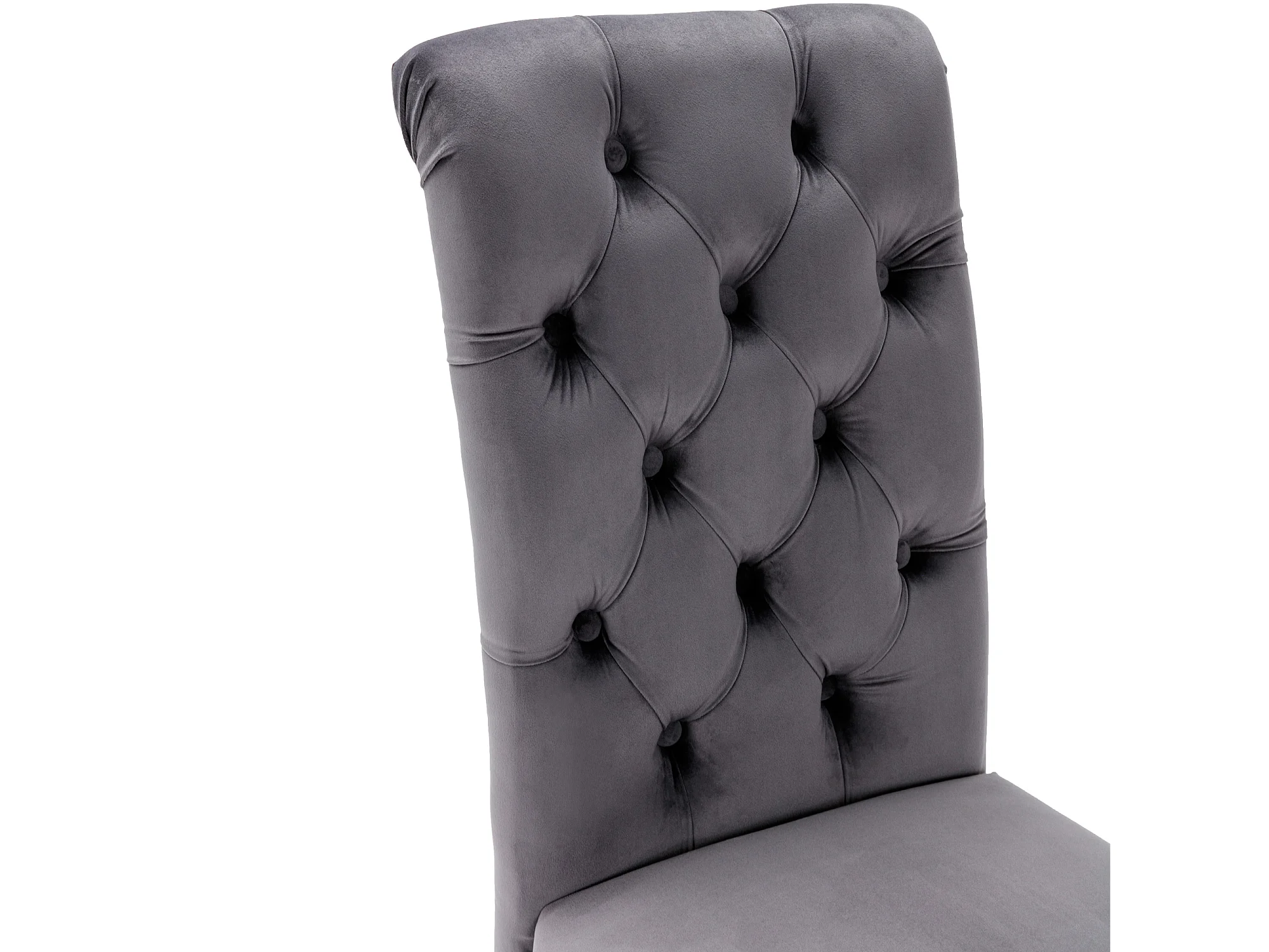 Lot de 2 chaises à manger en velours avec dossier - pieds en bois doré - gris