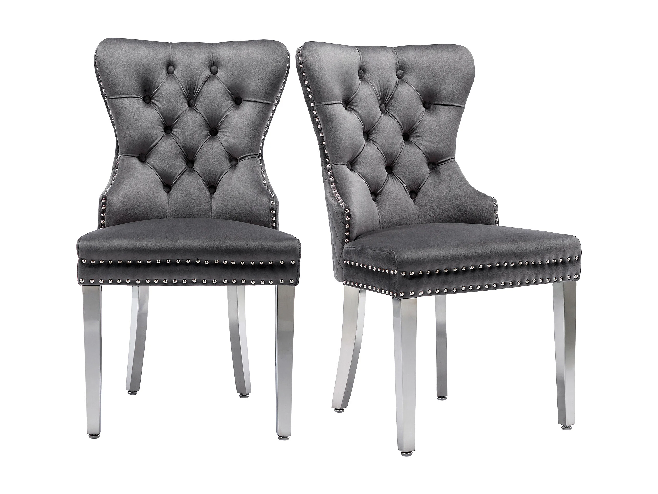 Lot de 2 chaises à manger en velours avec dossier rembourré - pieds en métal argenté - gris