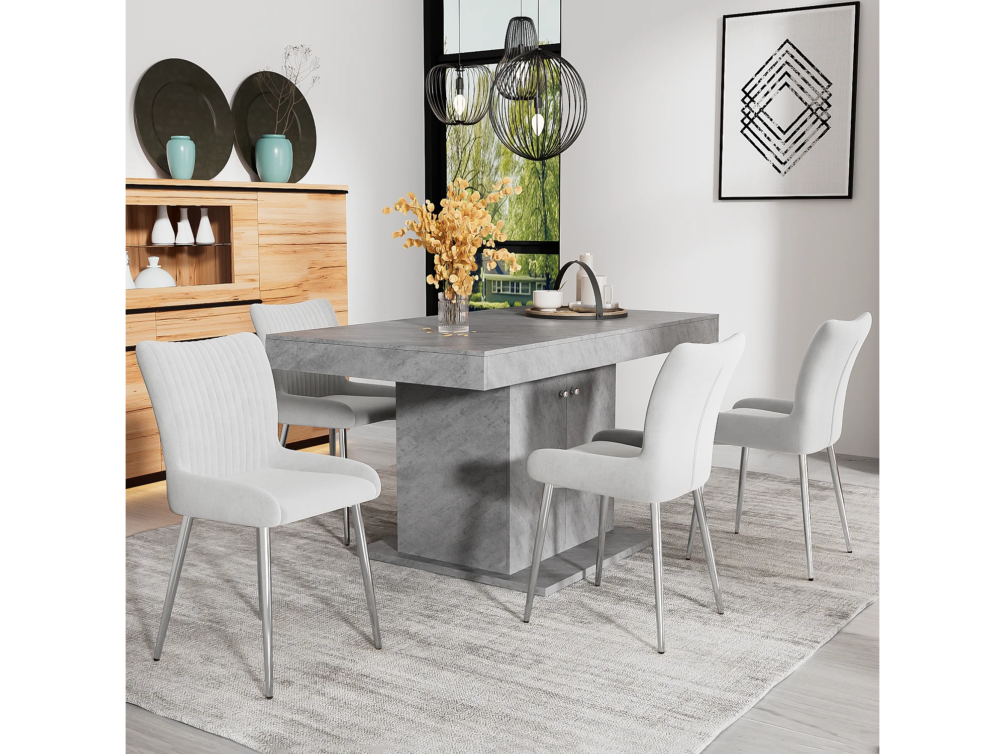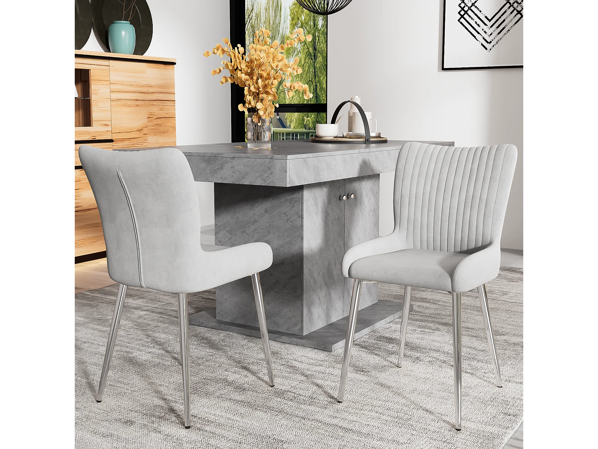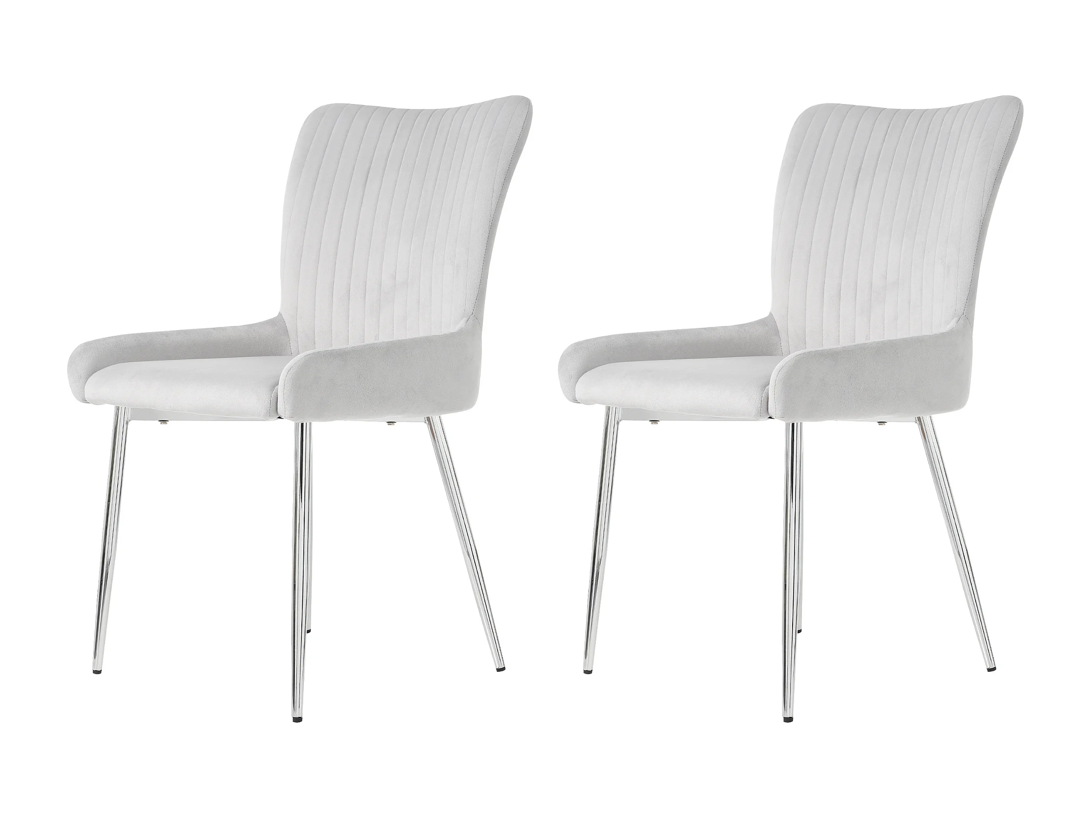 Lot de 2 chaises à manger en velours avec et dossier - pieds en métal argenté - gris