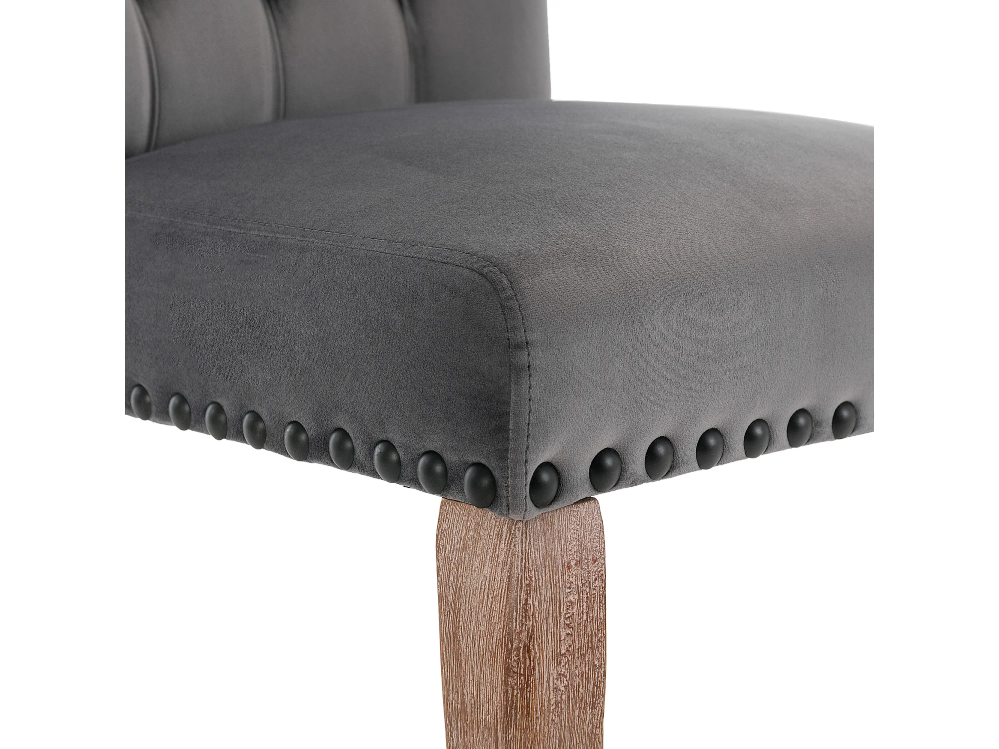 Lot de 2 chaises à manger en velours - pieds en bois - gris