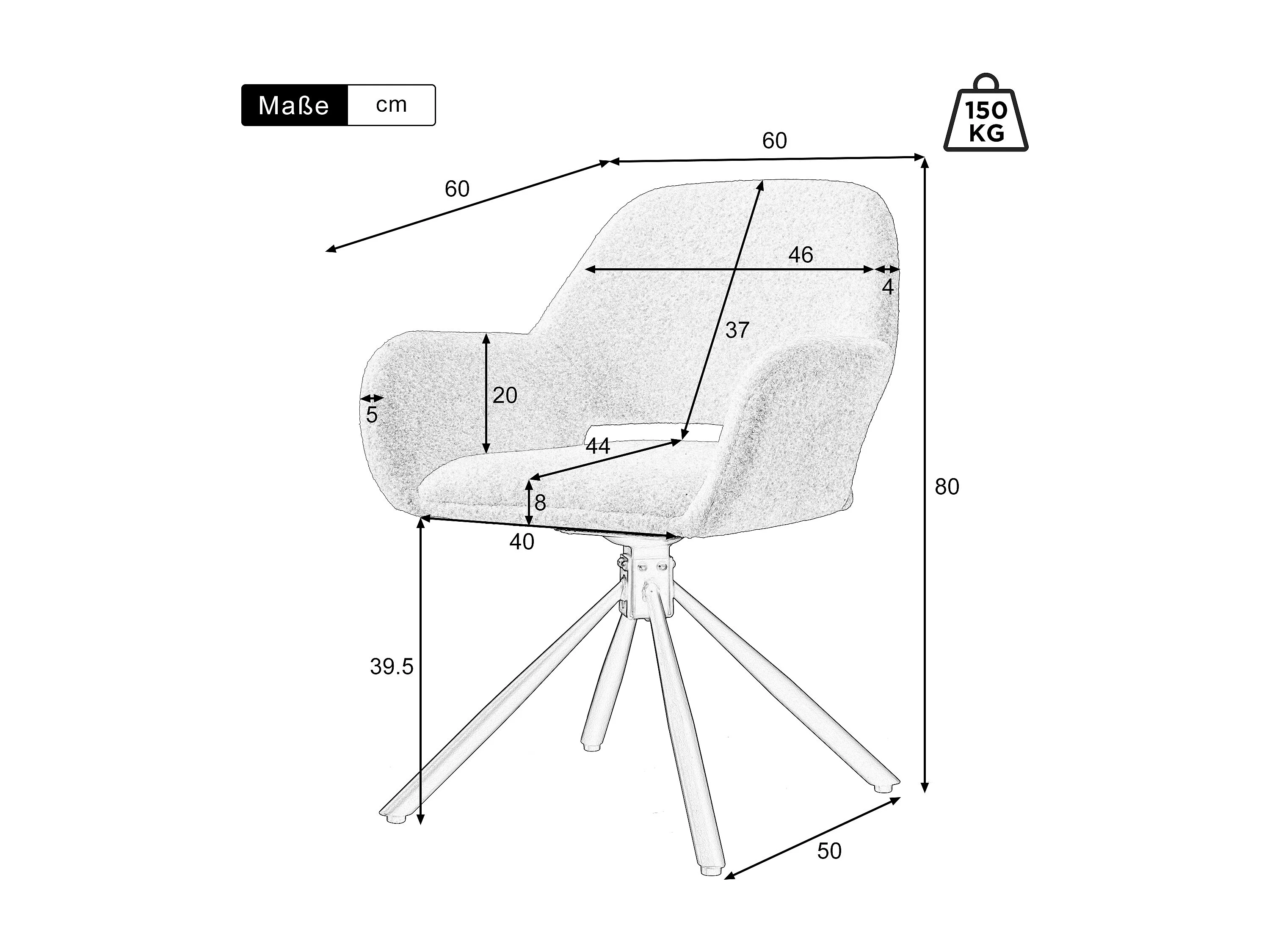 Lot de 2 chaises à manger pivotante en laine d'agneau avec accoudoirs et dossier - pieds en métal - blanc