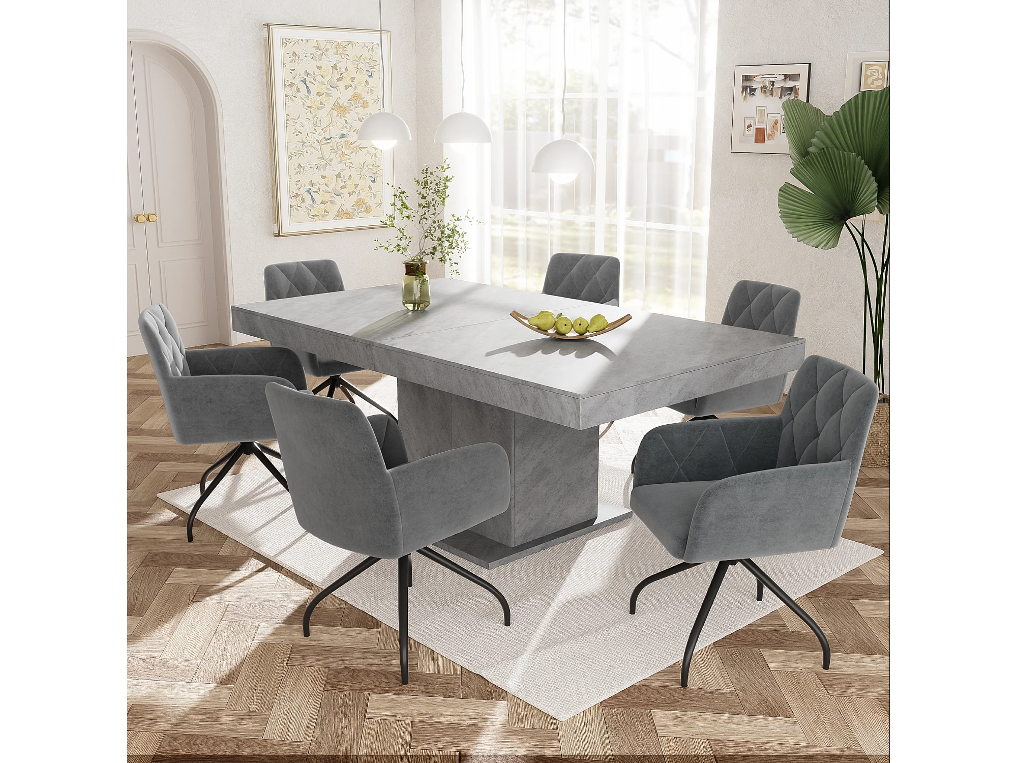 Lot de 2 chaises à manger rotative avec accoudoirs et dossier - pieds en métal - gris velours