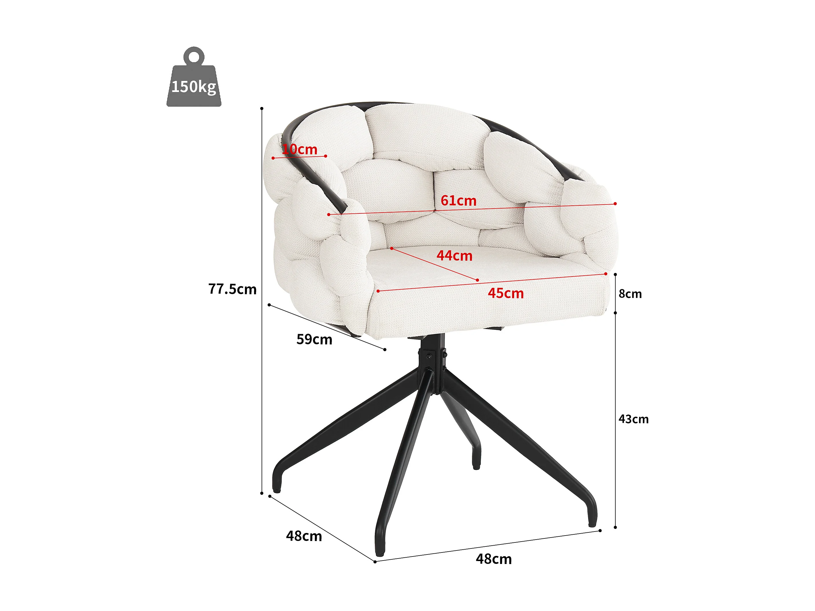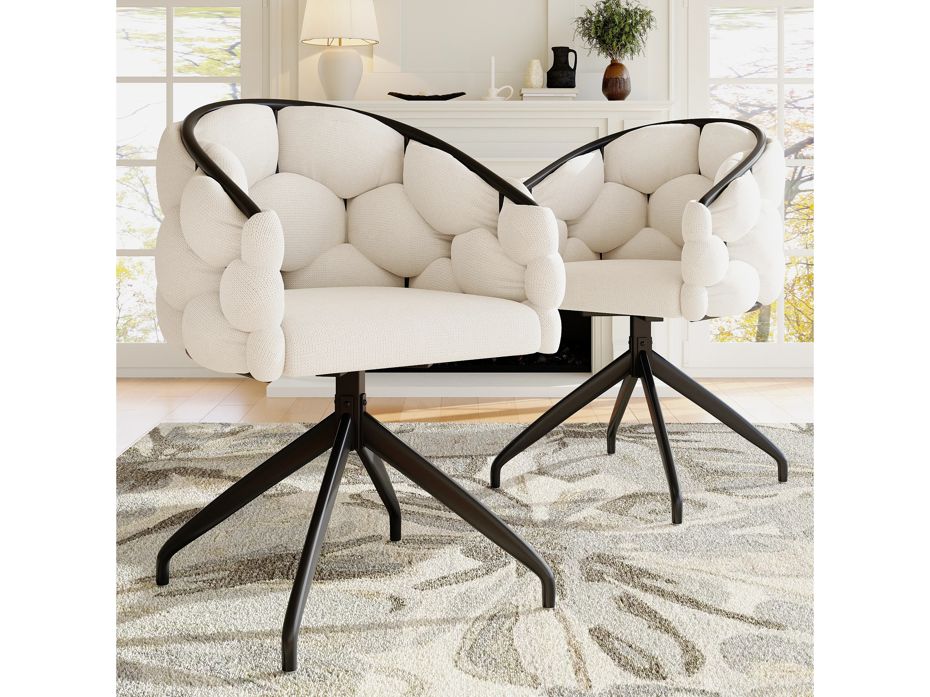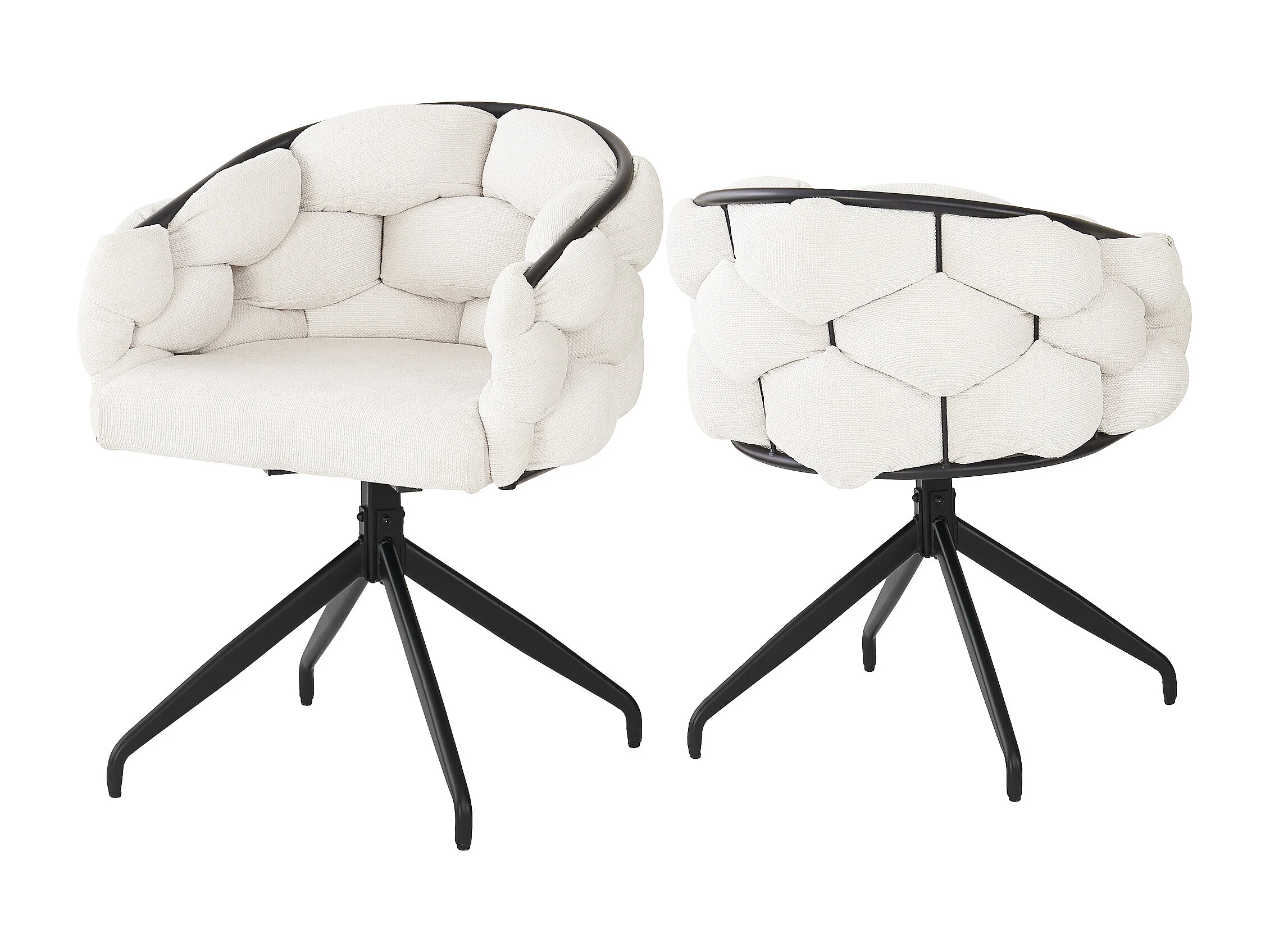 Lot de 2 chaises à manger rotatives en velours avec dossier rembourré et accoudoirs - pieds en métal noir - beige