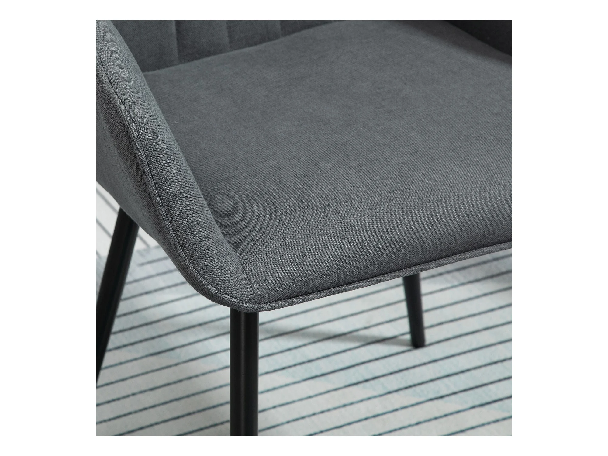 Lot de 2 chaises avec accoudoirs en lin gris, pieds en métal noir
