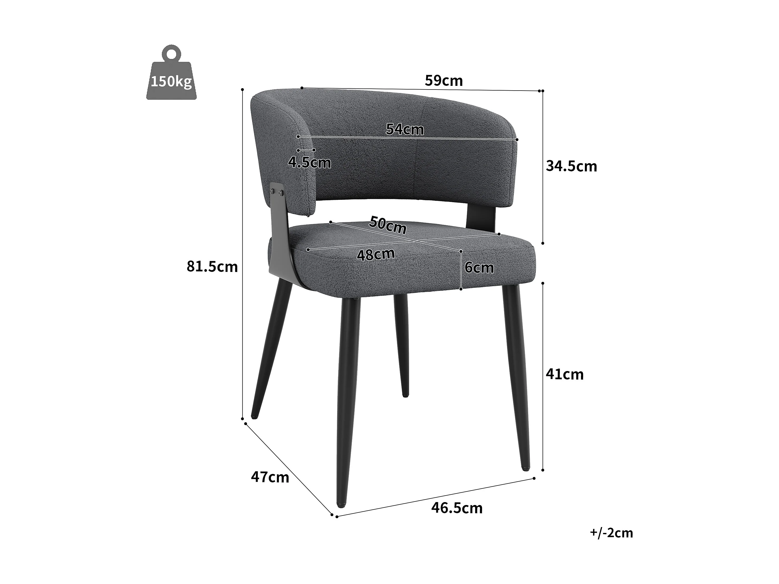 Lot de 2 chaises avec dossier rembourré et accoudoirs - pieds de chaise réglables - laine d'agneau - gris