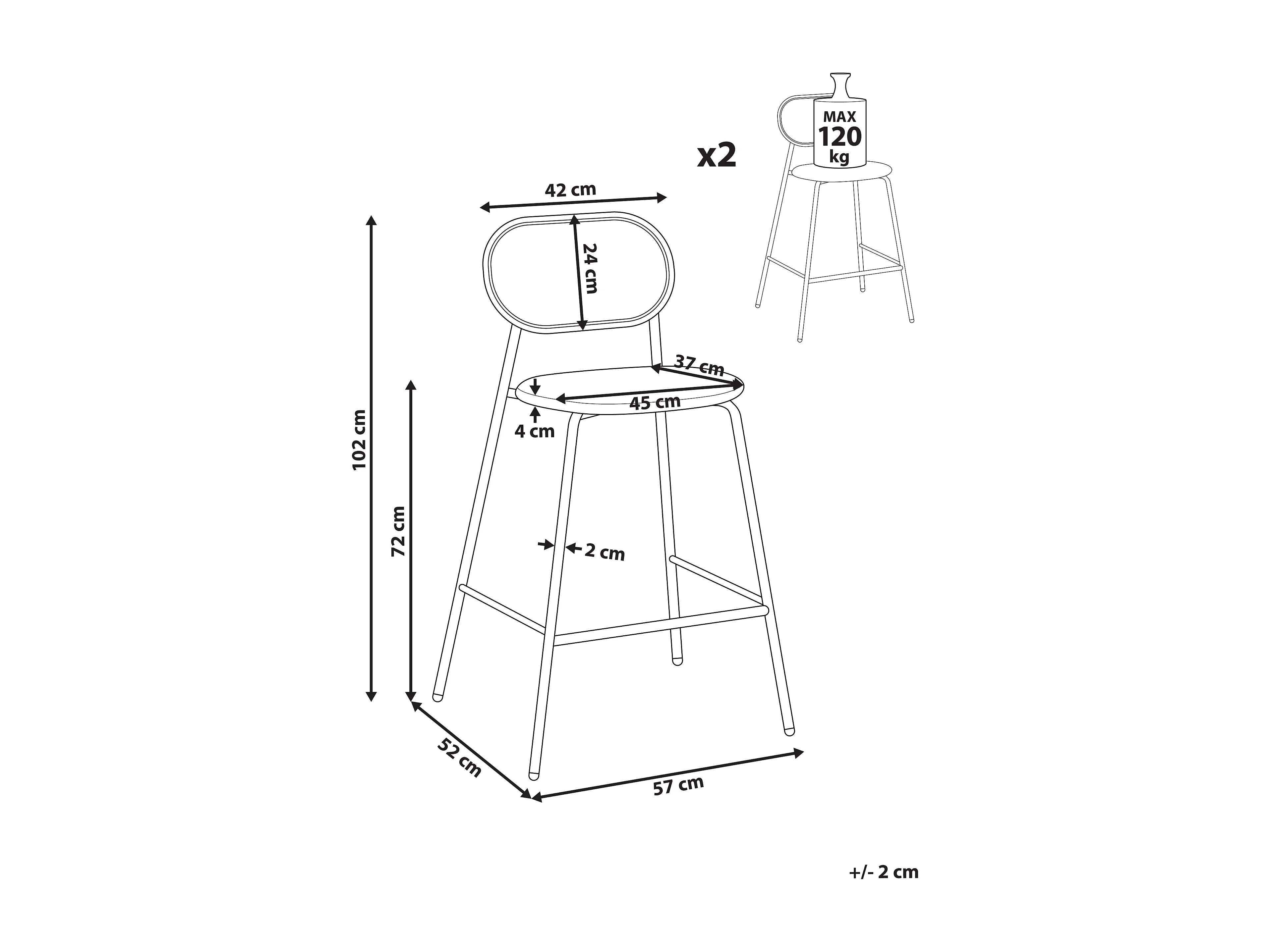 Tabourets de bar MCW-O84 (lot de 2), noir