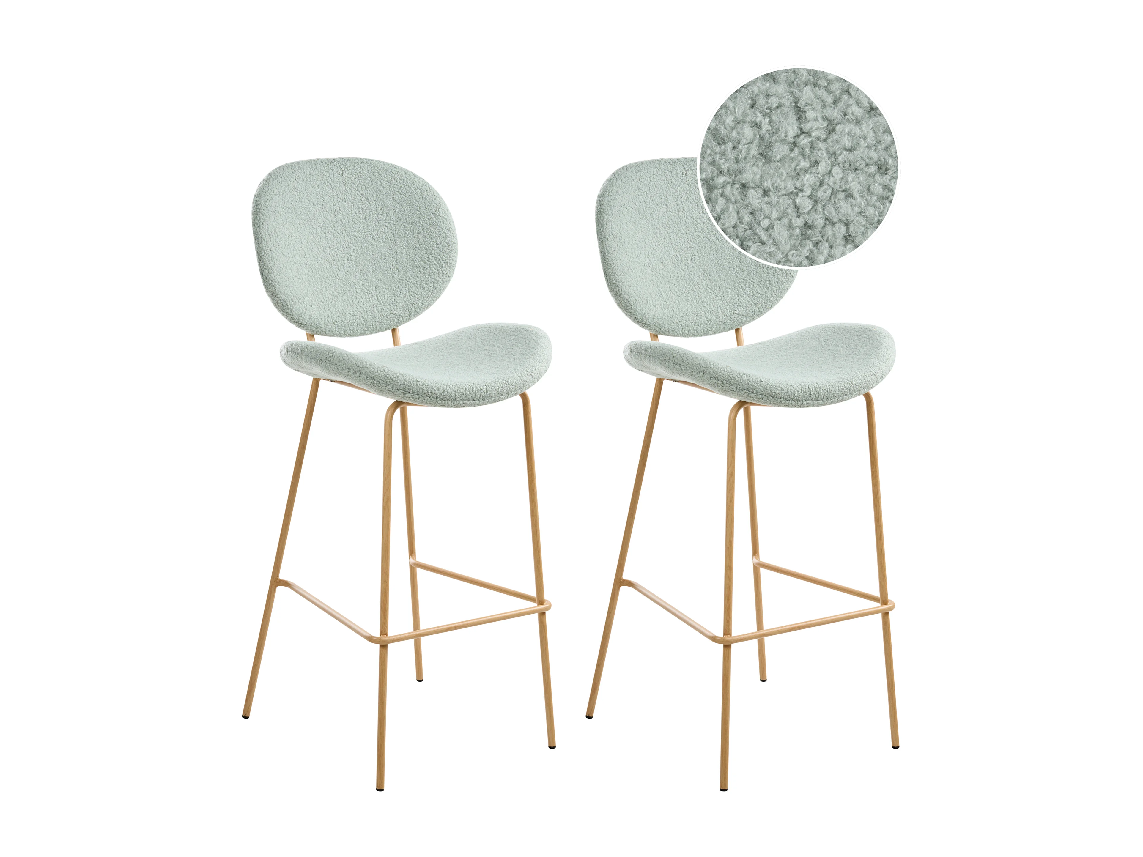 Lot de 2 chaises de bar LUANA Bouclé Vert clair