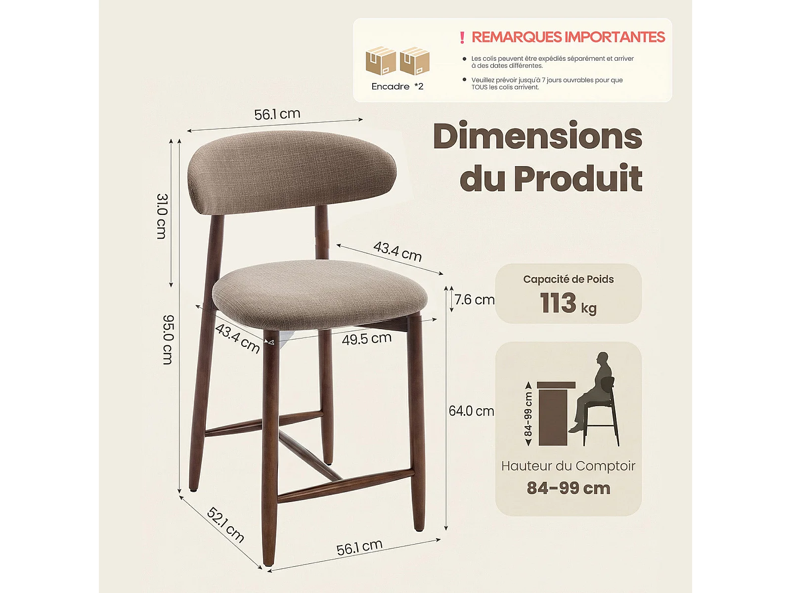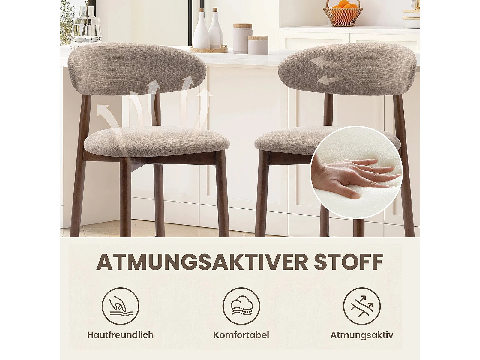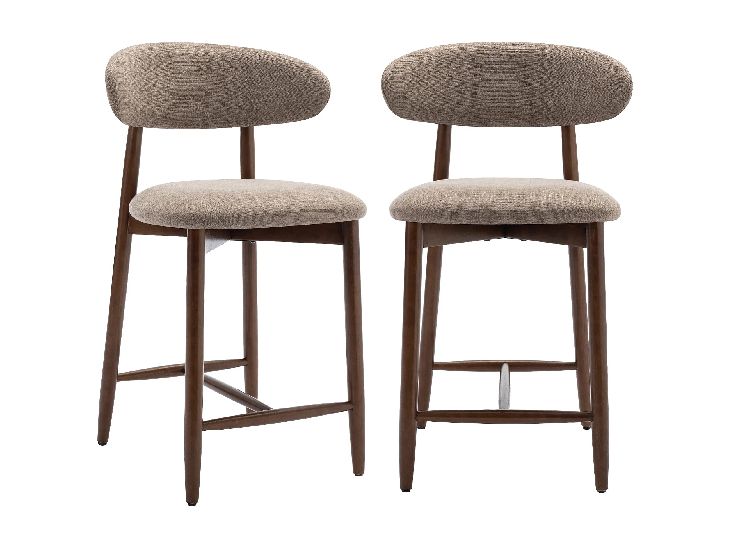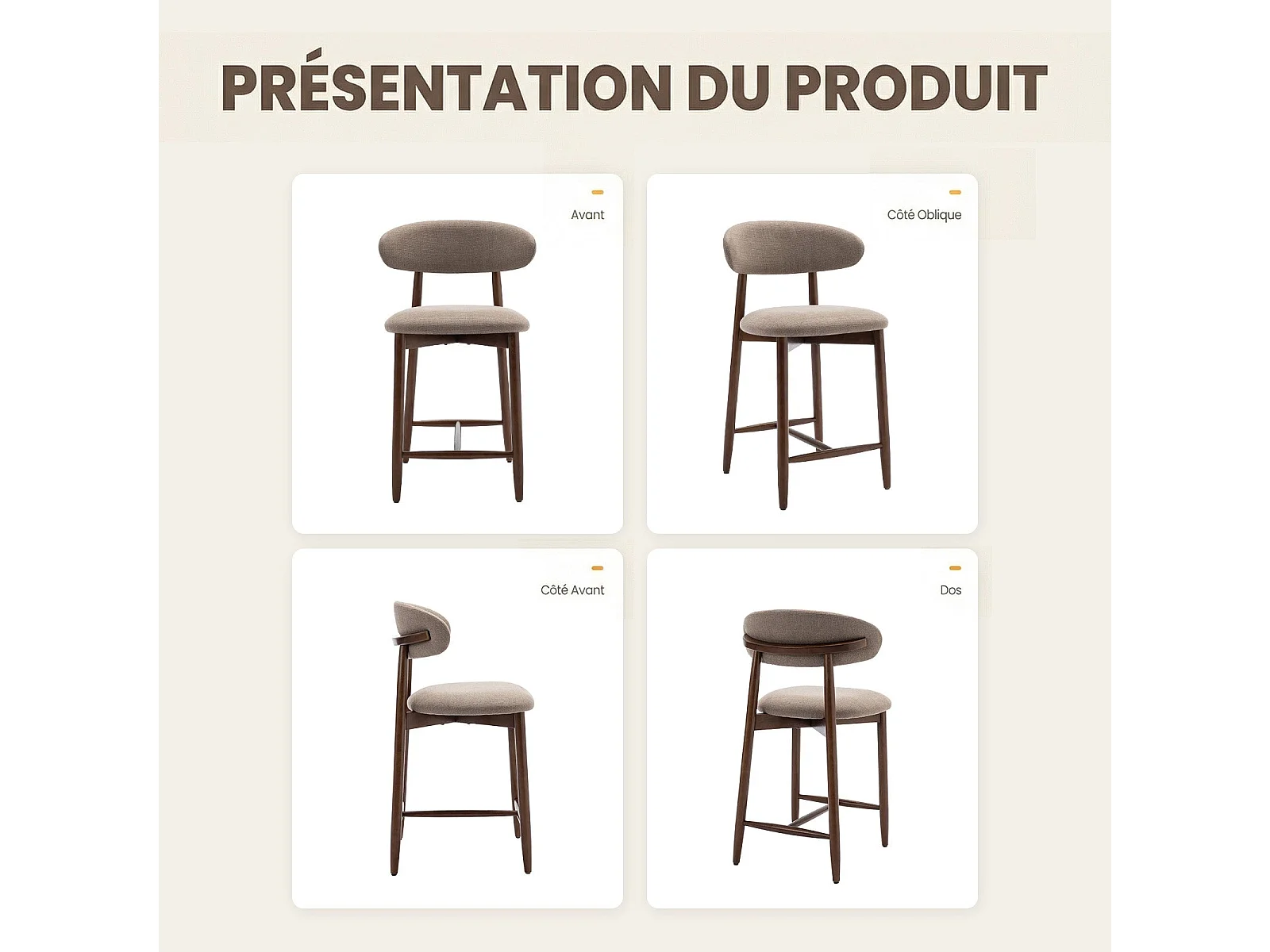 Lot de 2 chaises de bar – Tabourets modernes avec dossier haut, assise confortable en tissu, pour comptoir, îlot de cuisine -structure en bois-Marron