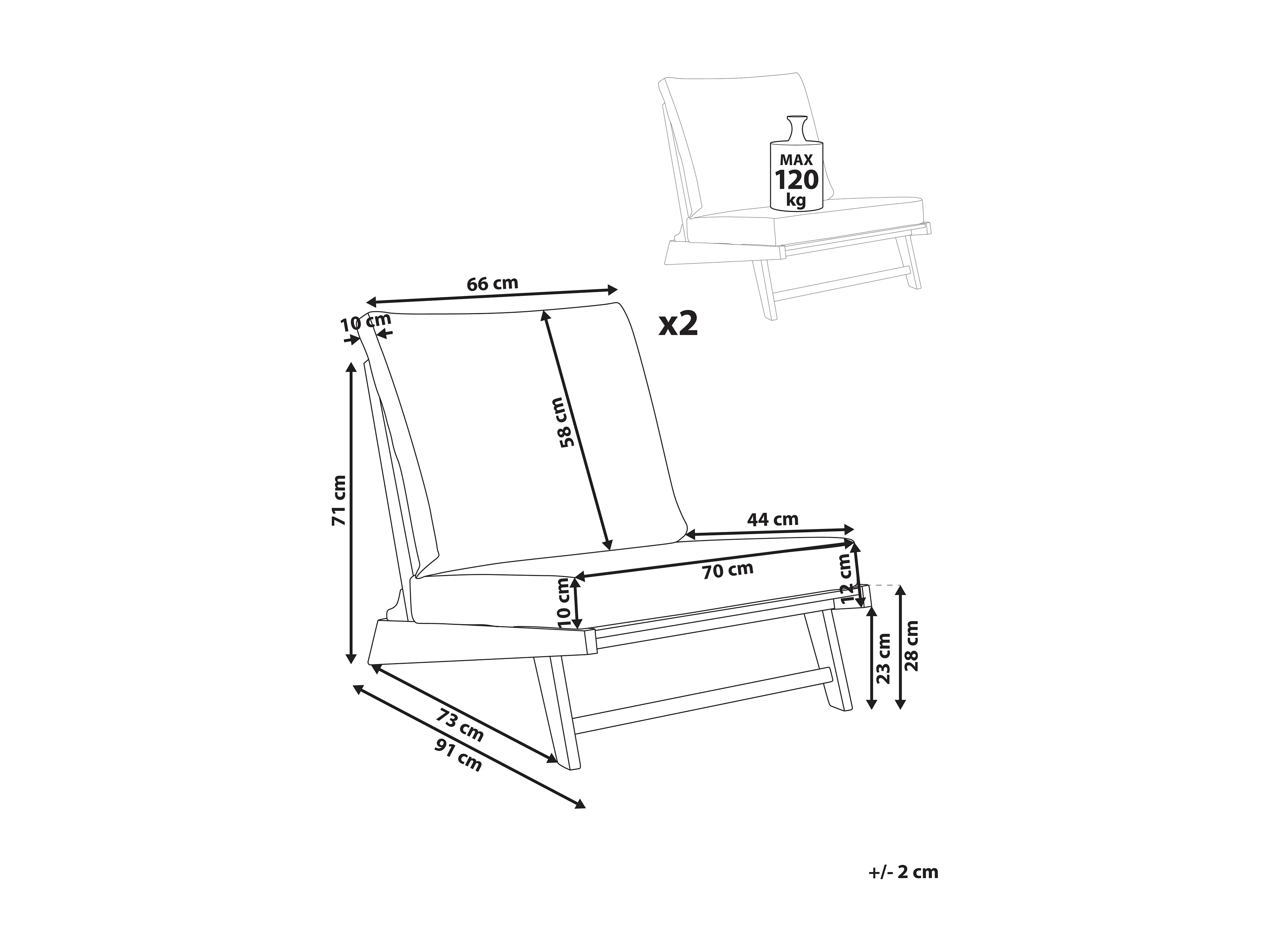 Lot de 2 chaises de jardin avec coussins MICCIANO Acacia Blanc cassé