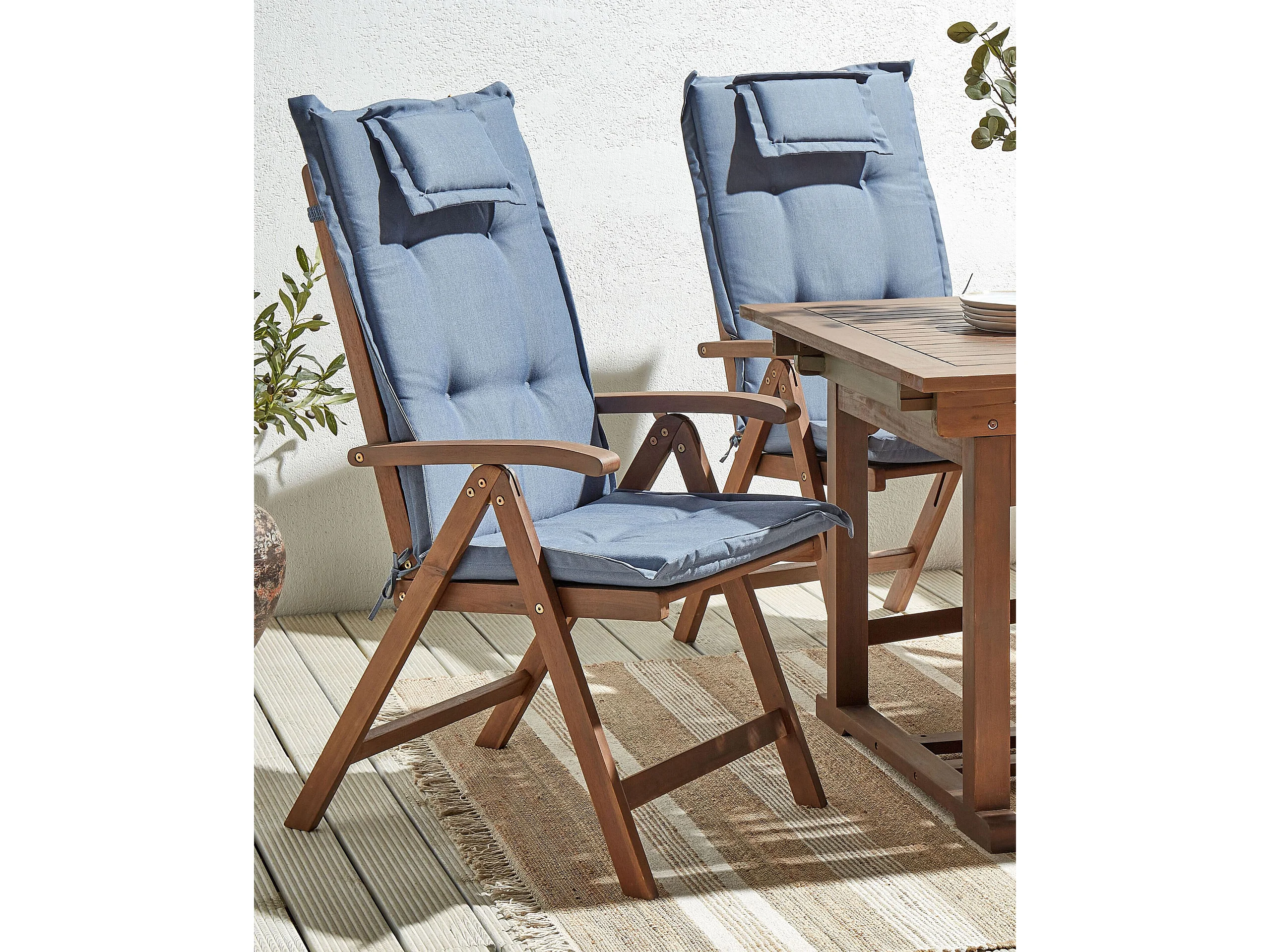 Lot de 2 chaises de jardin avec coussins AMANTEA Acacia Bleu