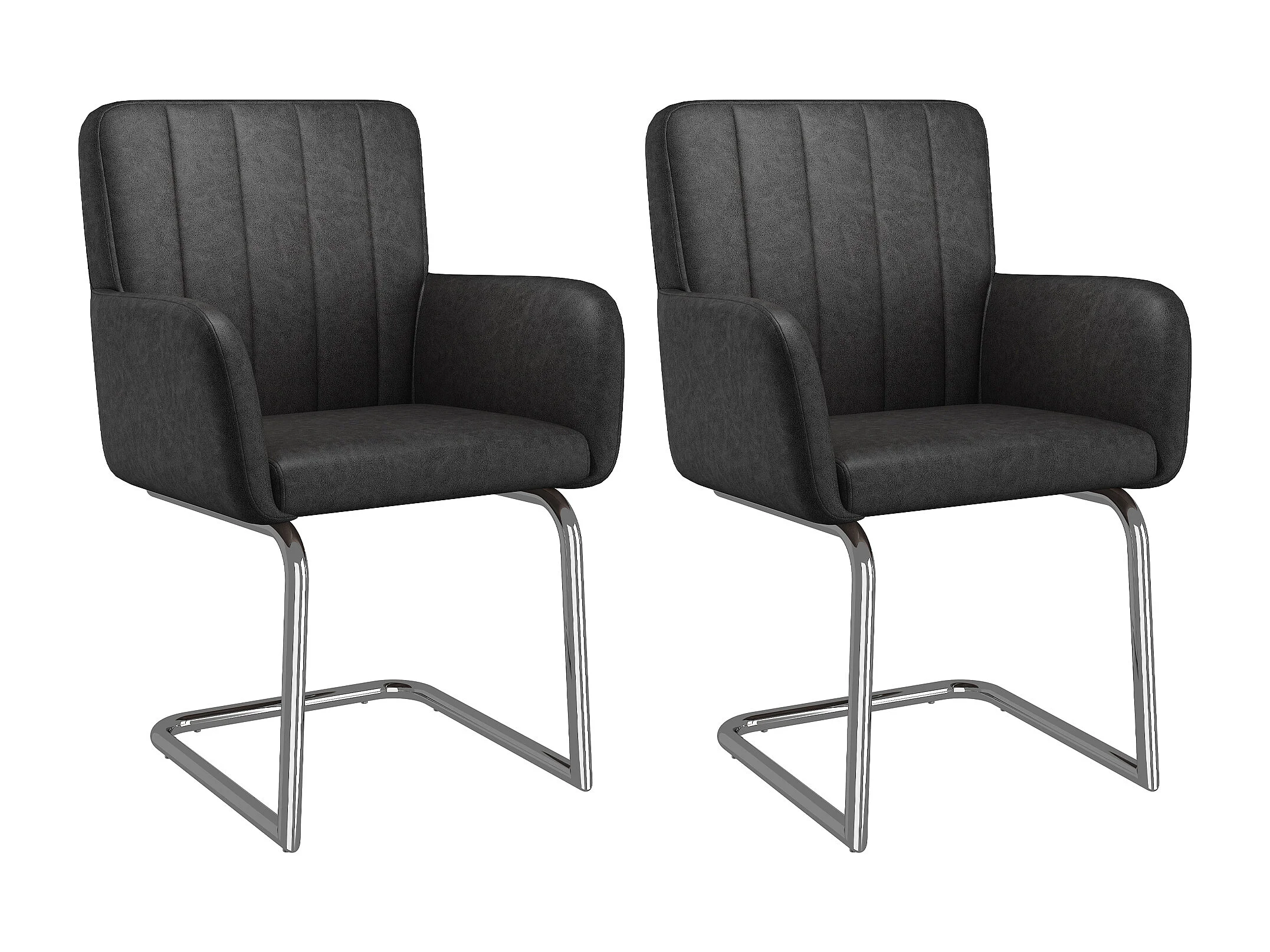 Lot de 2 chaises de salle à manger - 56 x 57 x 86 cm - fauteuil rembourré - pieds en métal - cuir PU - noir