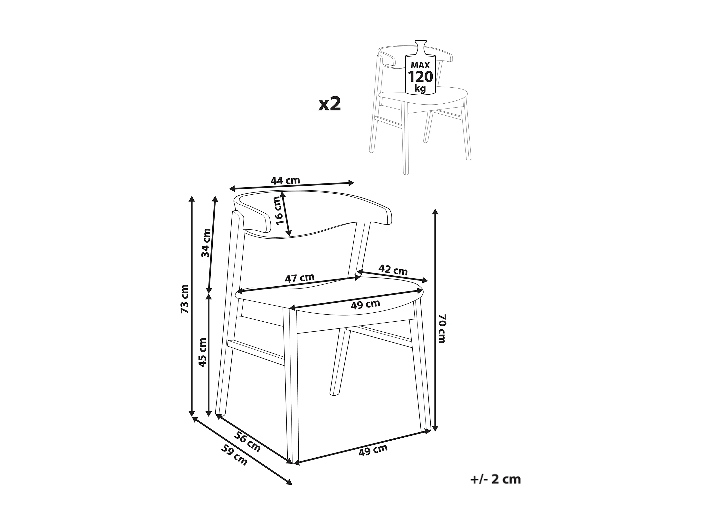 Lot de 2 chaises de salle à manger LILLY Marron foncé/vert