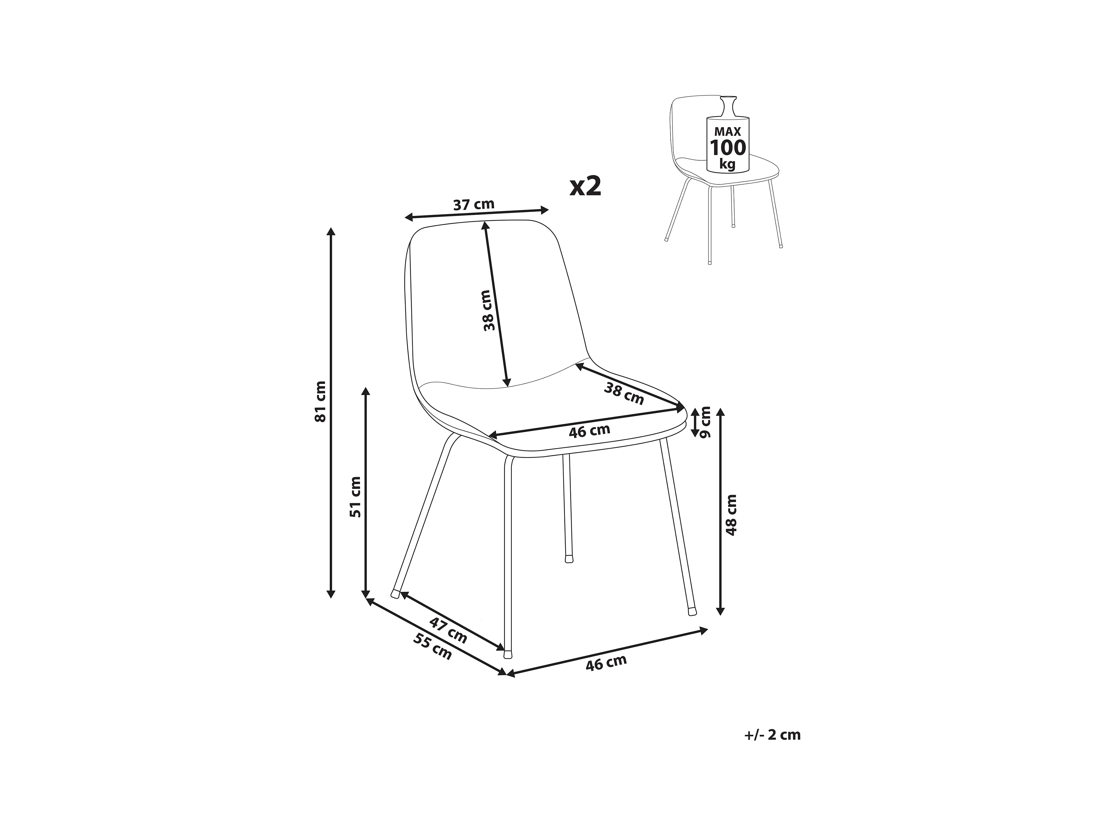 Lot de 2 chaises de salle à manger LORIDA Tissu Gris clair