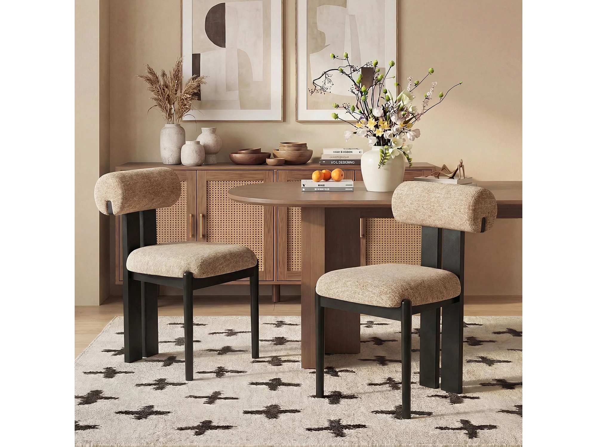 Lot de 2 chaises de salle à manger modernes, dossier cylindrique, cadre en bois, pieds bois noir, Camel