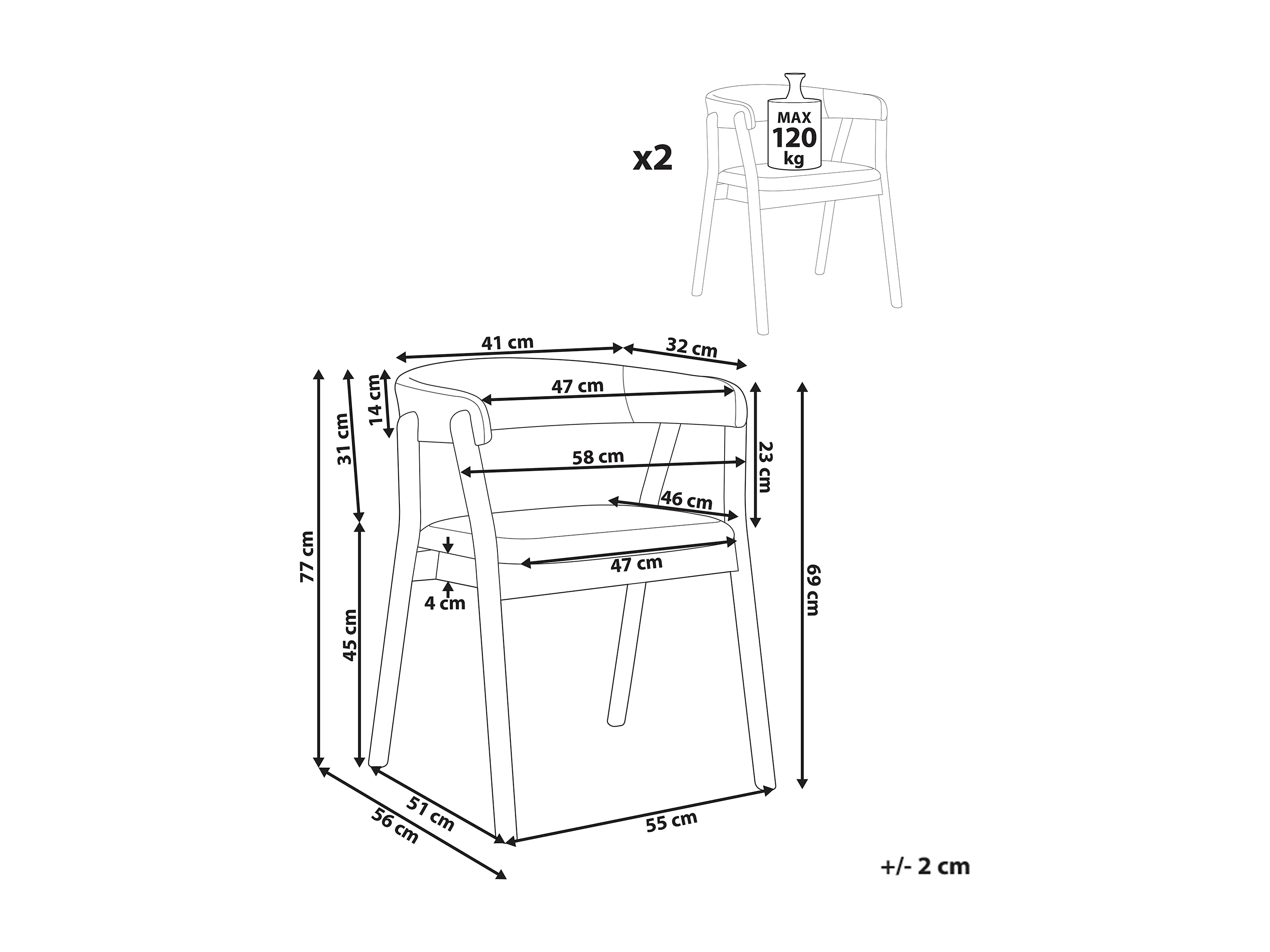 Lot de 2 chaises de salle à manger MYLO Tissu Marron foncé/vert