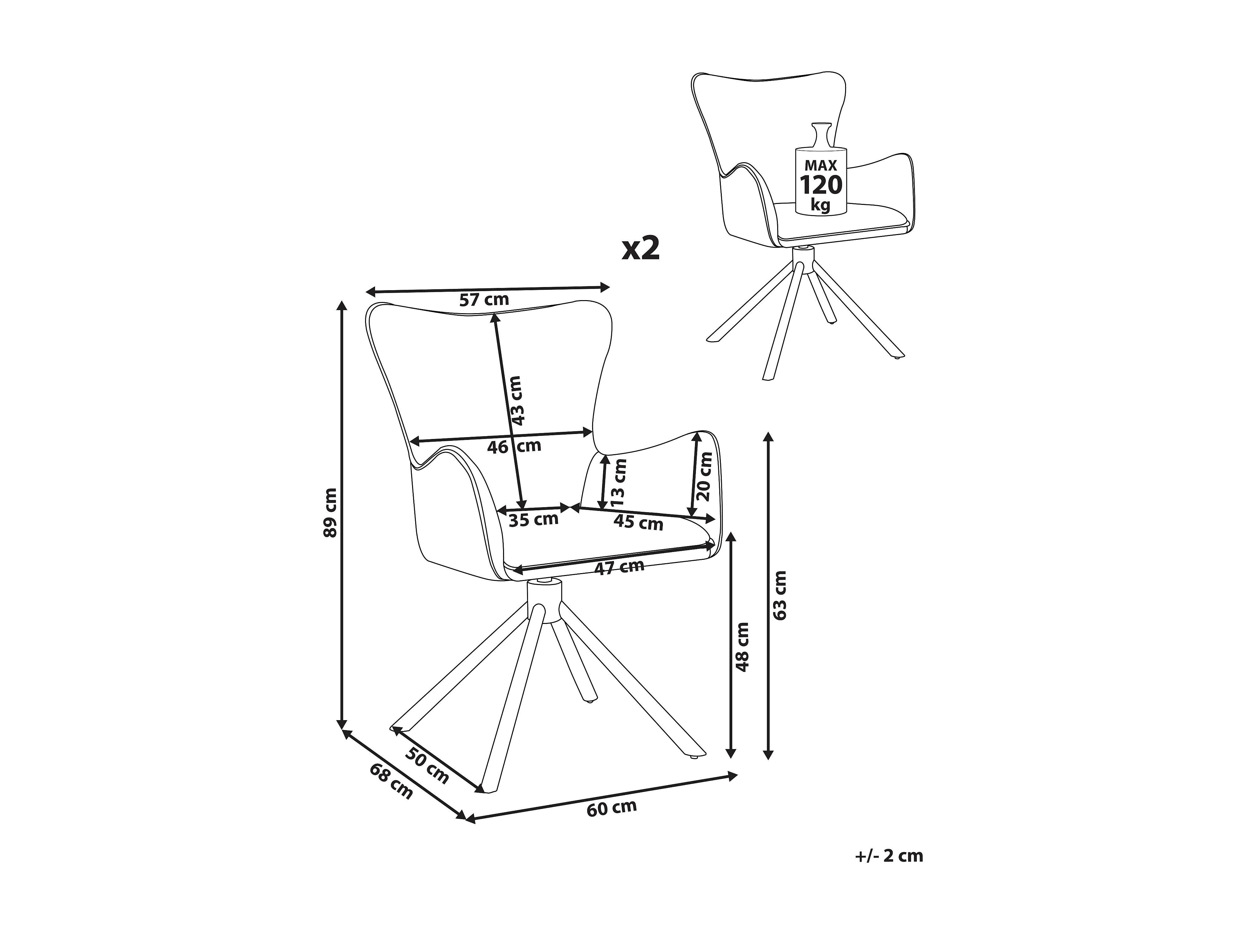 Lot de 2 chaises de salle à manger NOVI Bouclé Beige clair