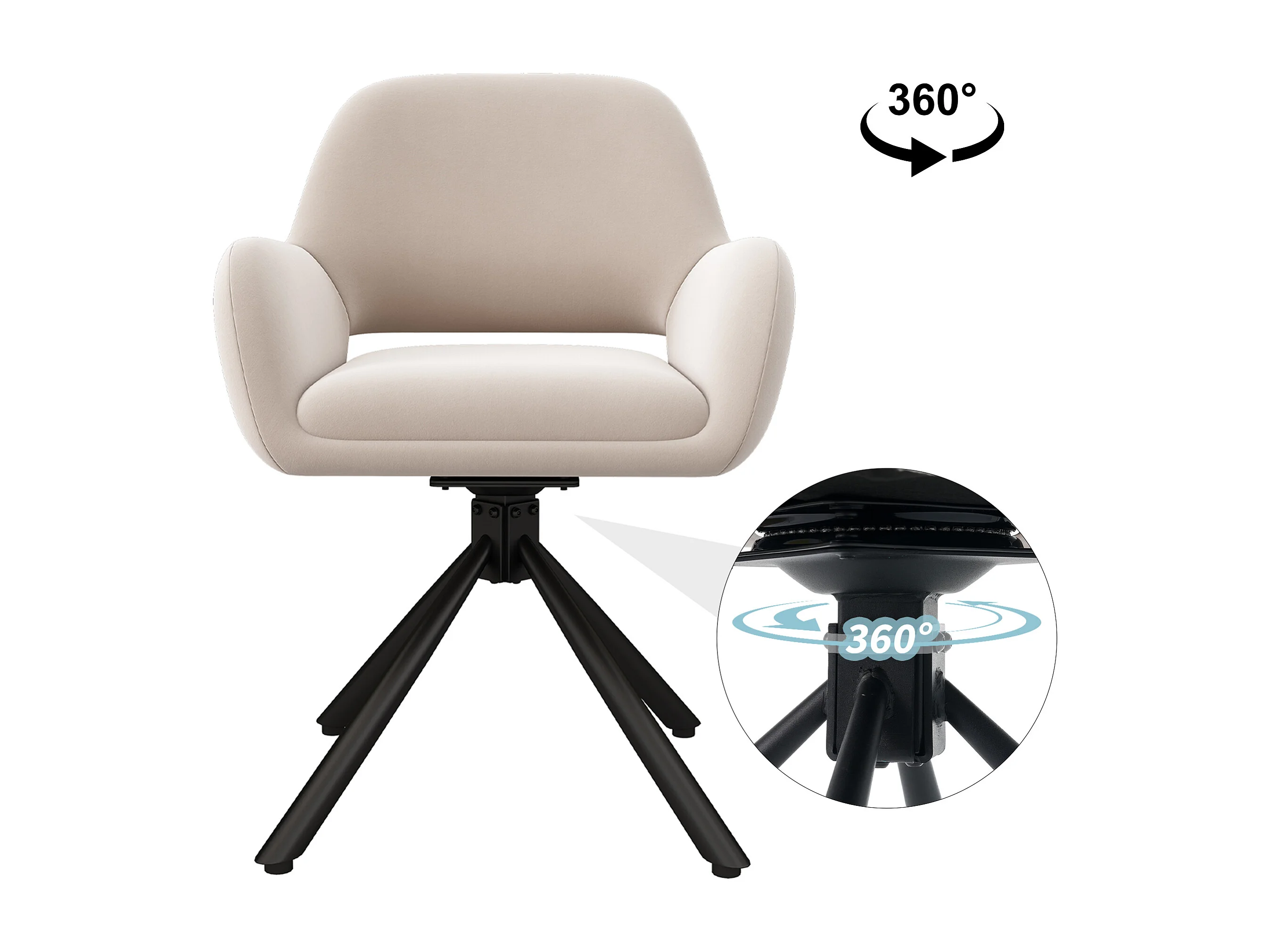 Lot de 2 chaises de salle à manger pivotantes en velours - 60 x 60 x 80 cm - avec accoudoirs - beige