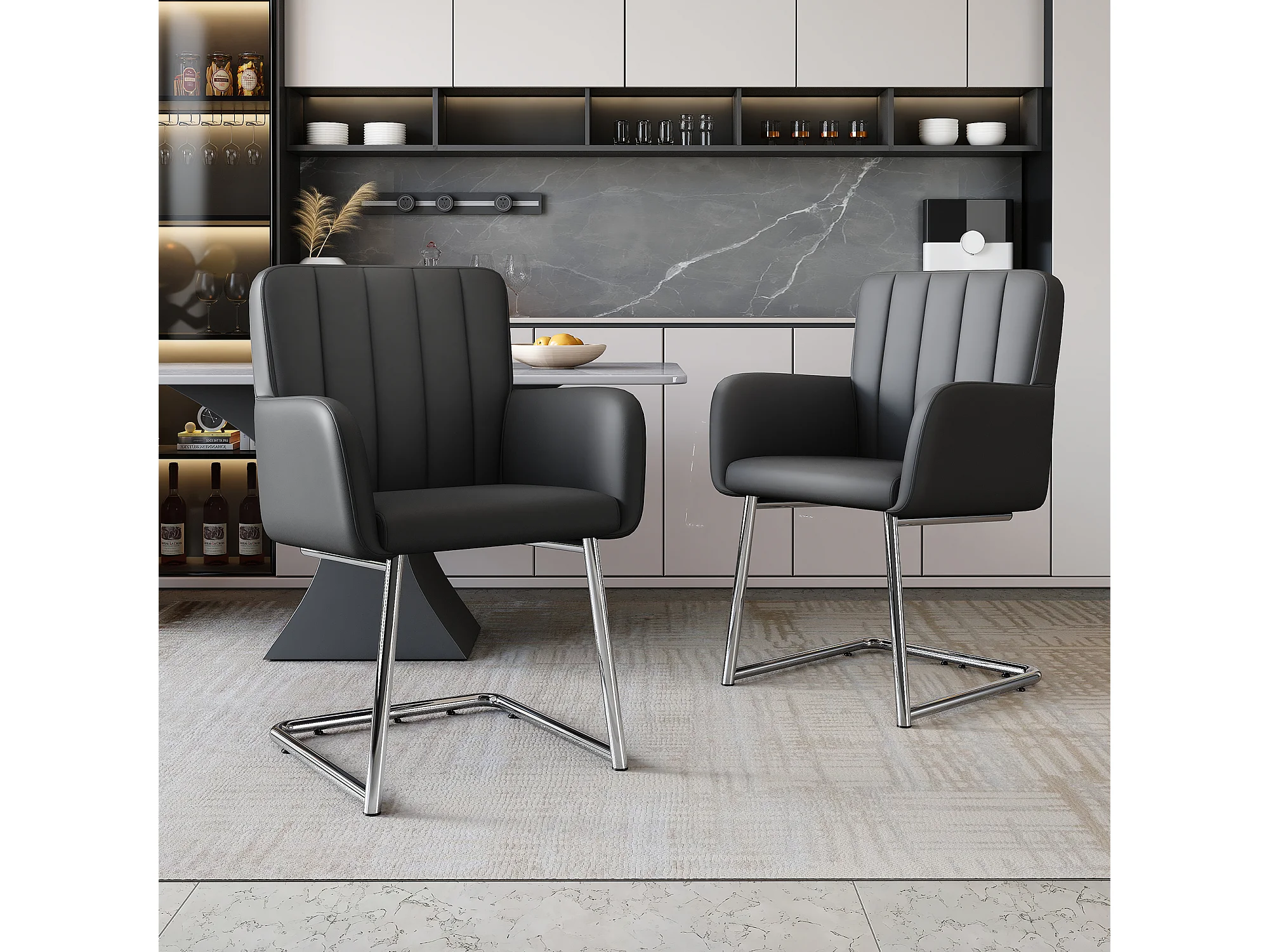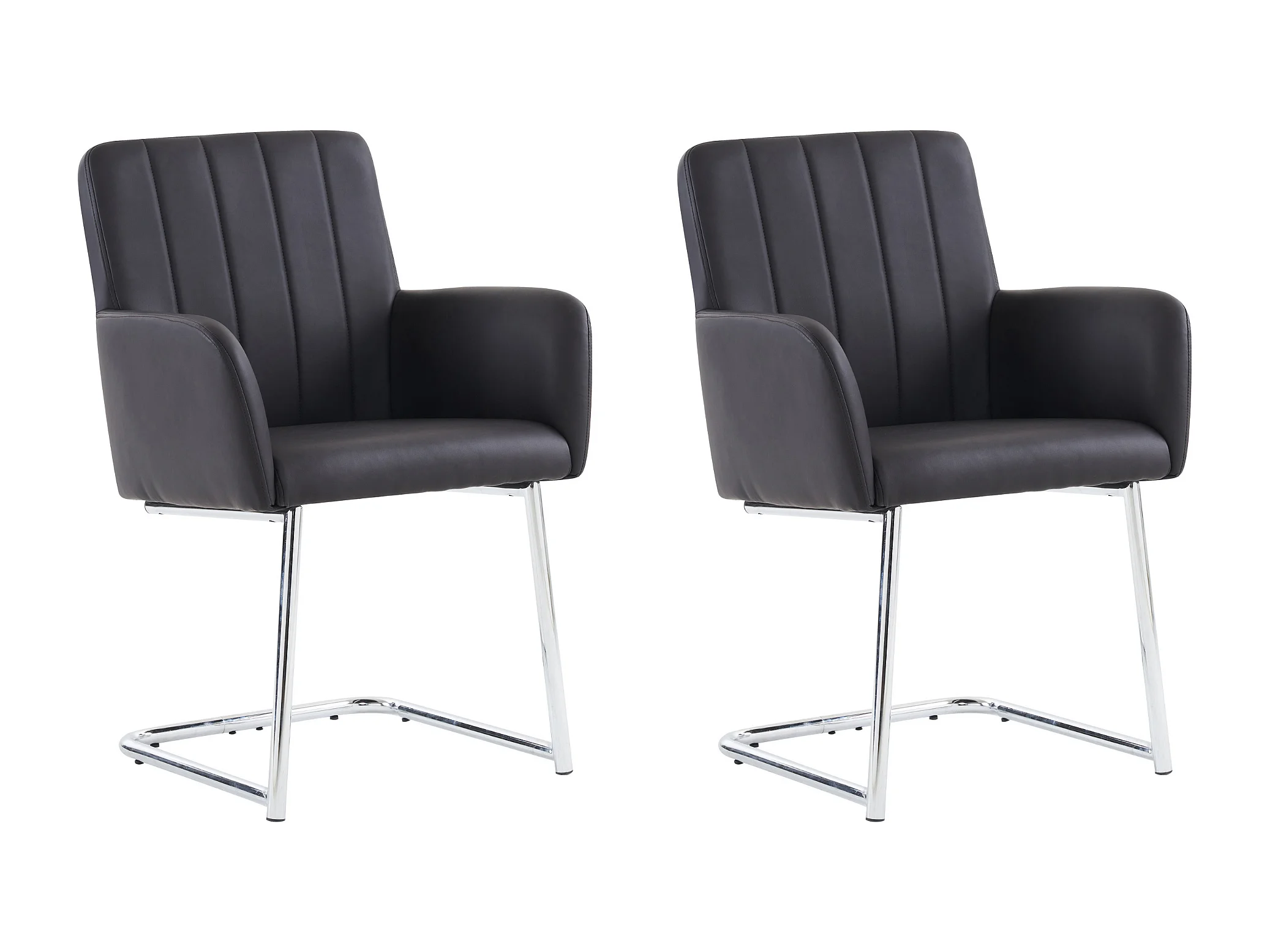 Lot de 2 chaises en similicuir avec accoudoirs et dossier - pieds en métal - noir