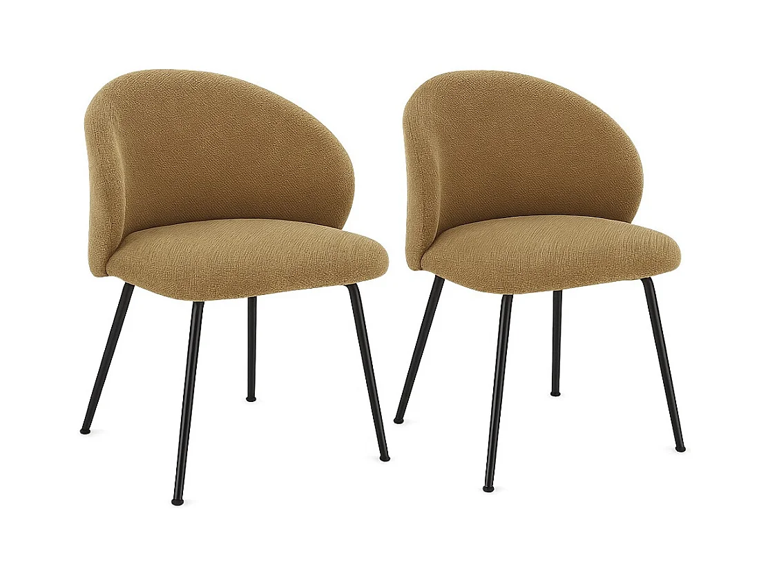 Lot de 2 chaises en tissu effet chenille et pieds métal noir KYZEN-Gris foncé