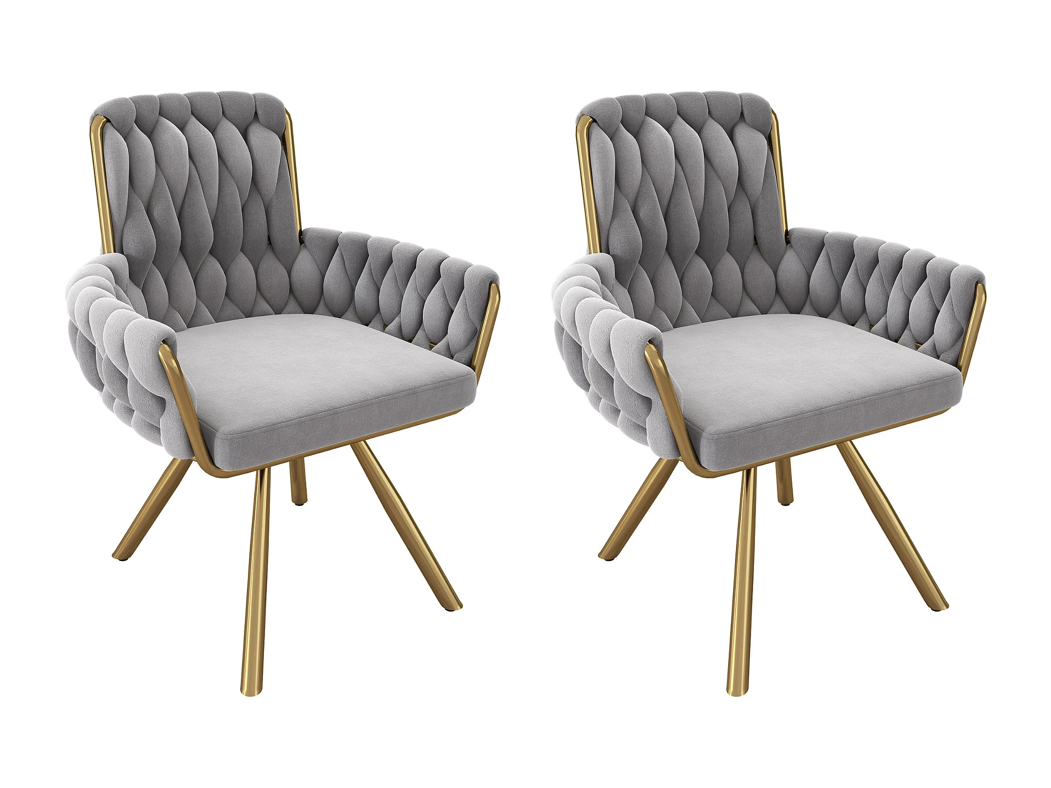 Lot de 2 chaises en velours avec accoudoirs 360° rotatifet dossier - pieds en métal - gris
