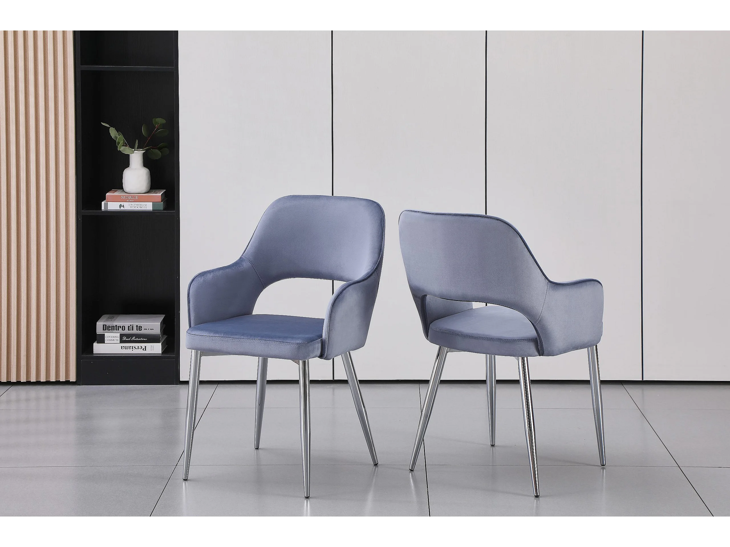 Lot de 2 chaises en velours et métal argenté - Bleu - GIA