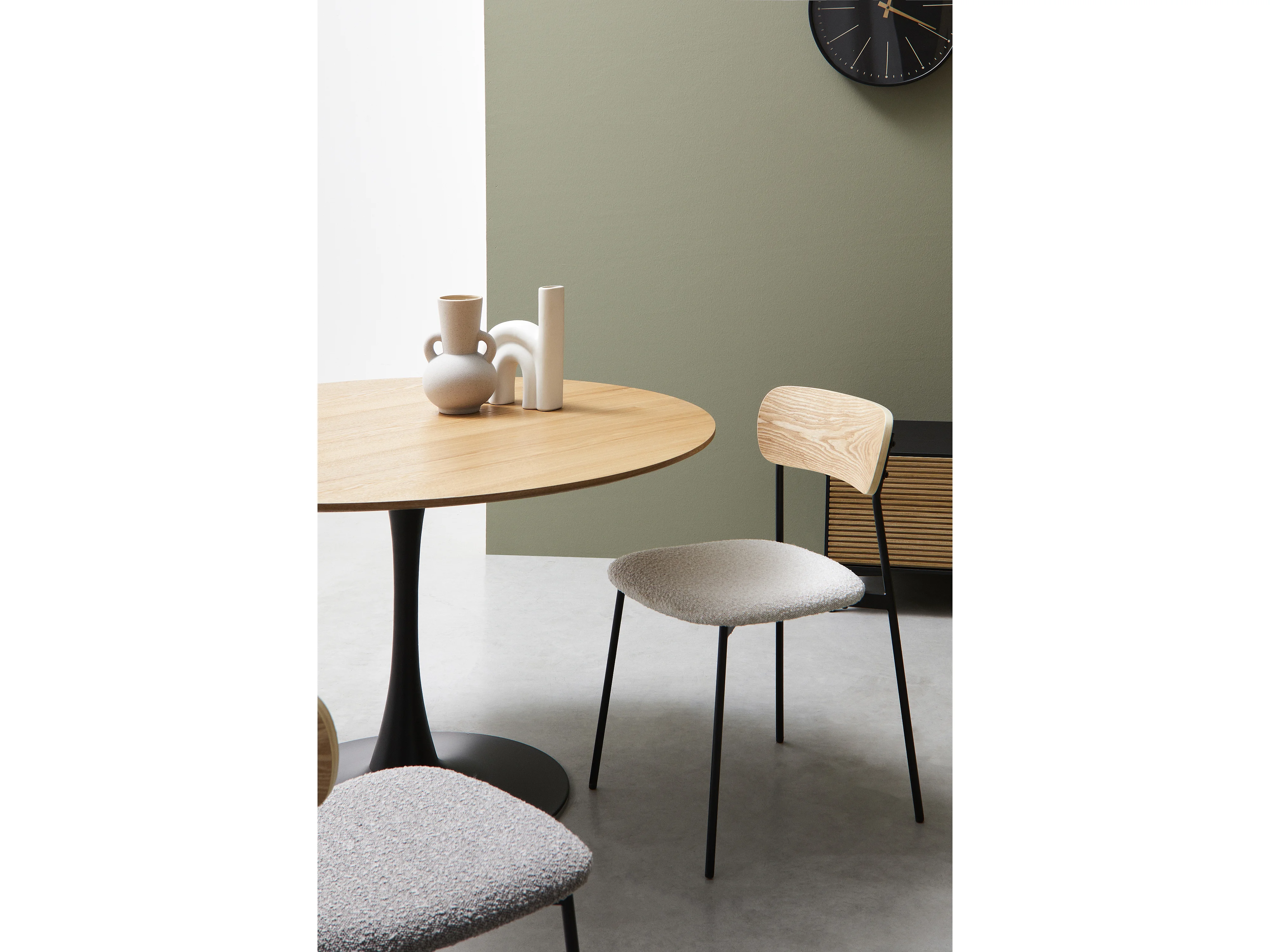 Lot de 2 chaises GENEVIEVE – Tissu bouclé & pieds acier noir-Beige