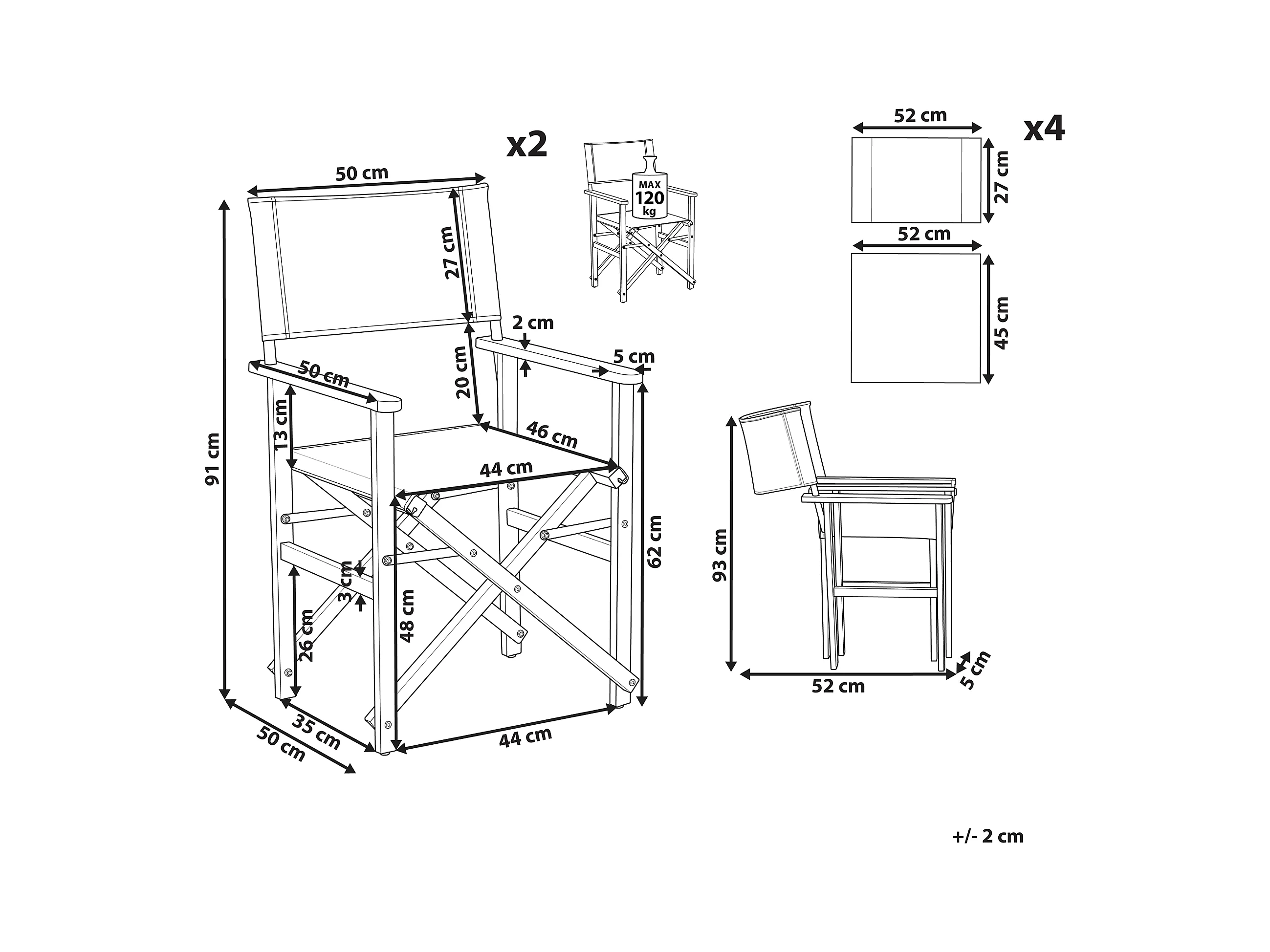 Lot de 2 chaises de jardin avec coussins CENTO Acacia Marron