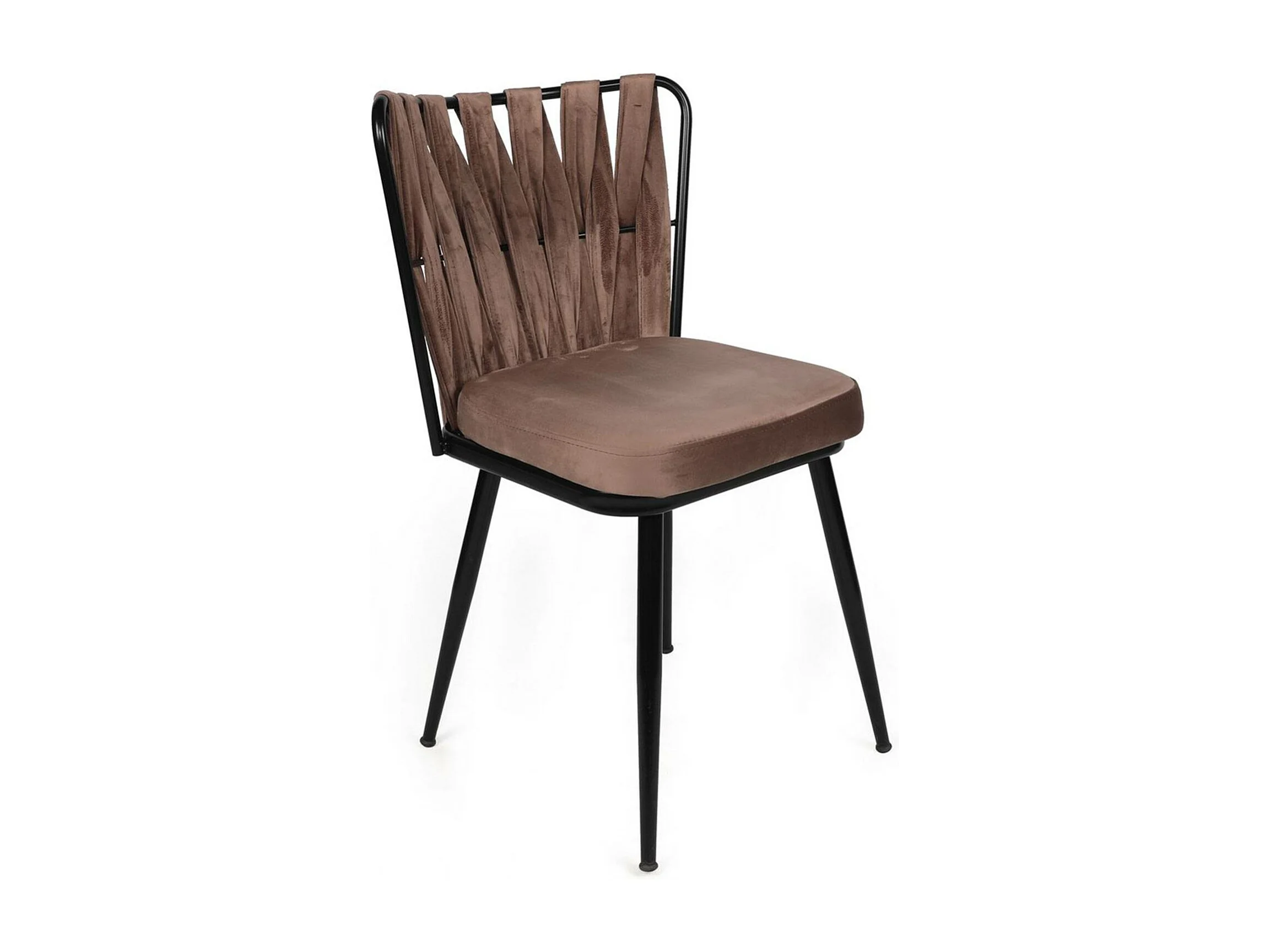 Lot de 4 Chaises de salle à manger avec dossier - Assise en velours - Pièds en métal - Marron