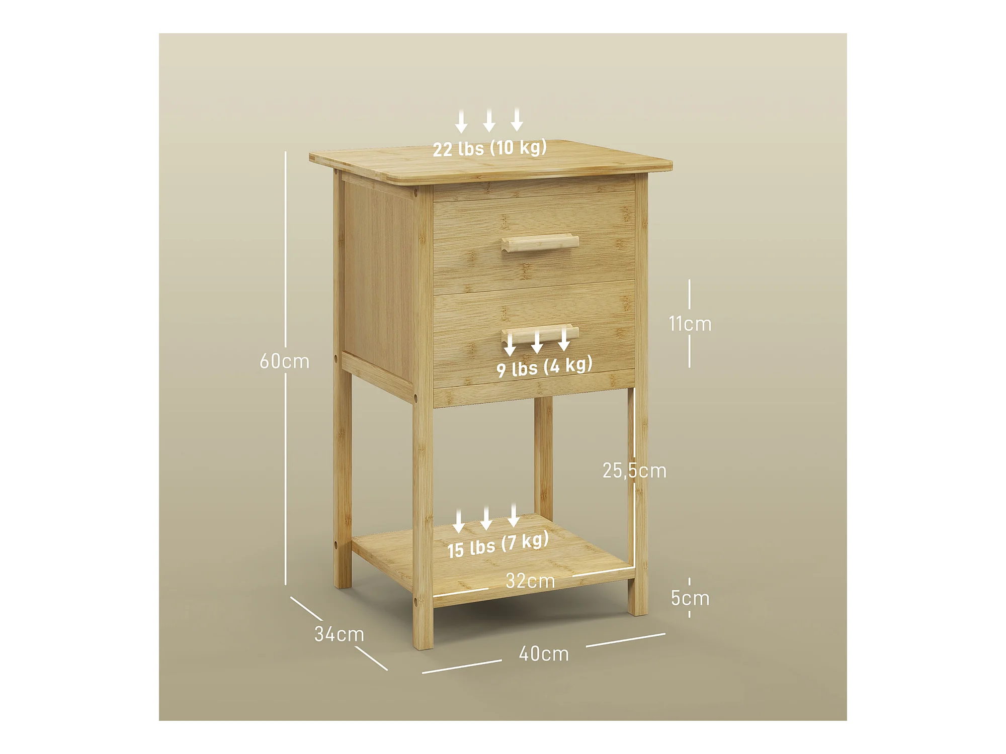 Bloc 2 tiroirs en pin massif - L36,2 x H36,2 cm