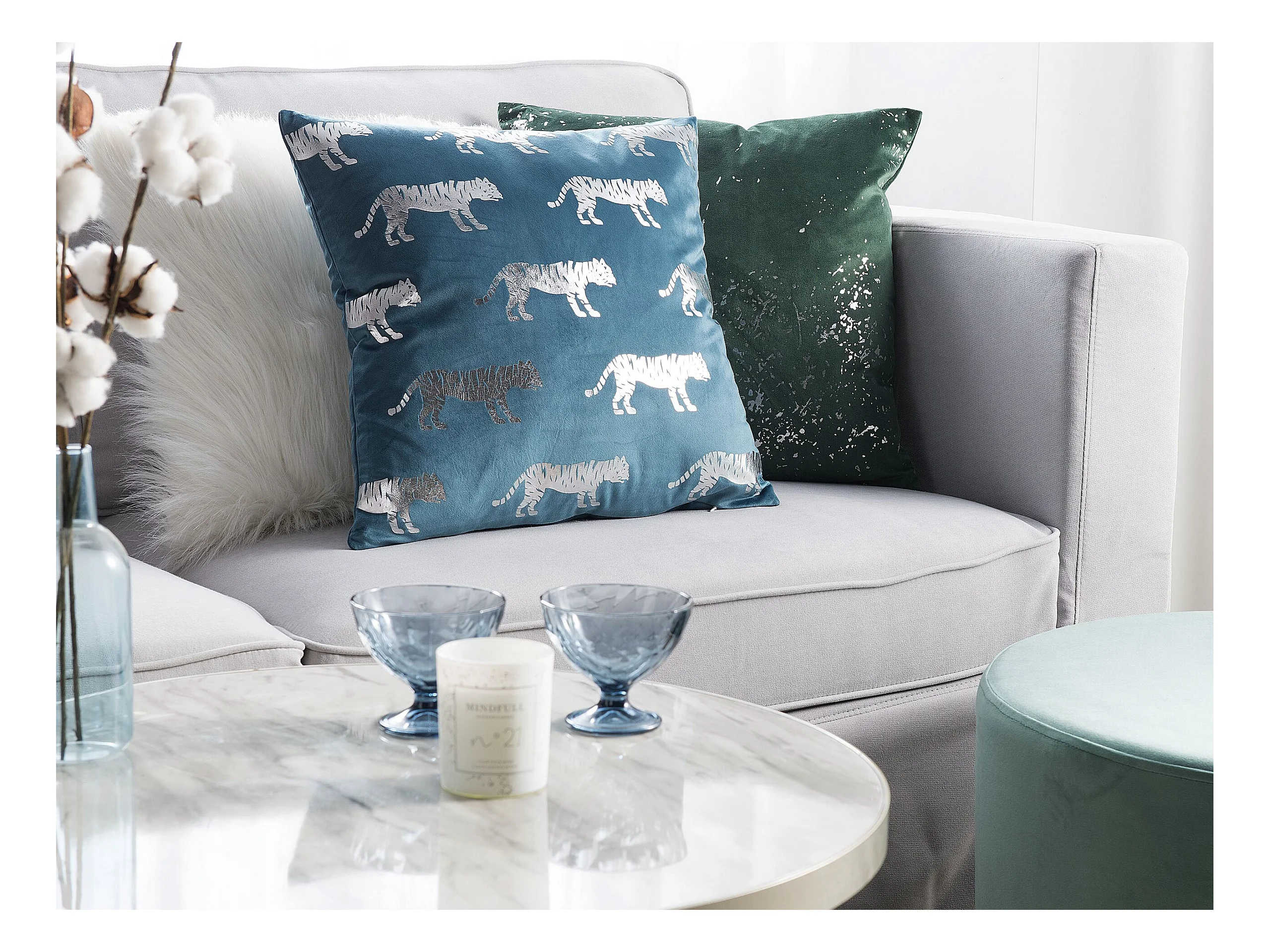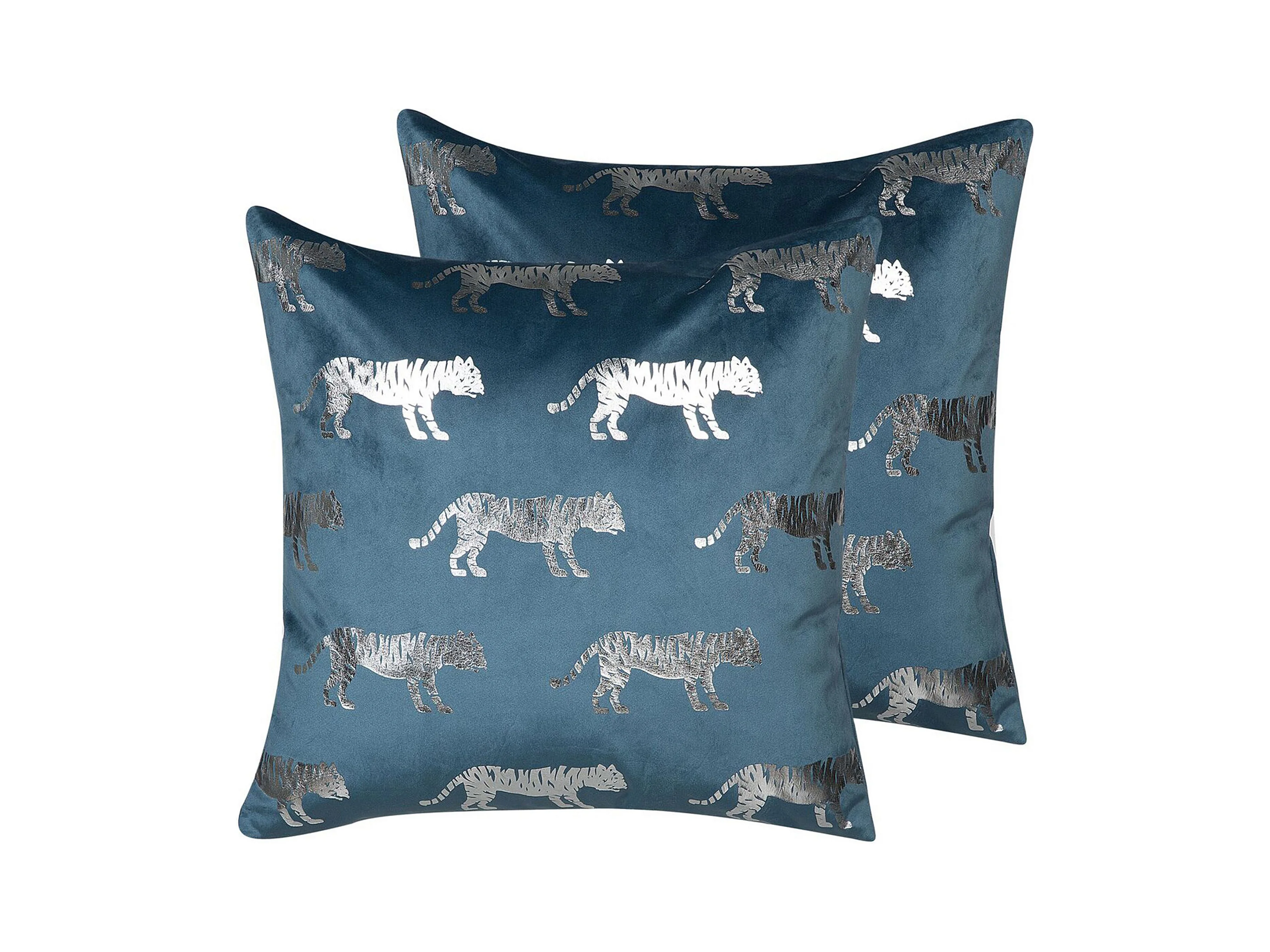 Lot de 2 coussins décoratifs BLUEBELL Velours 45 x 45 cm Bleu Motif animal
