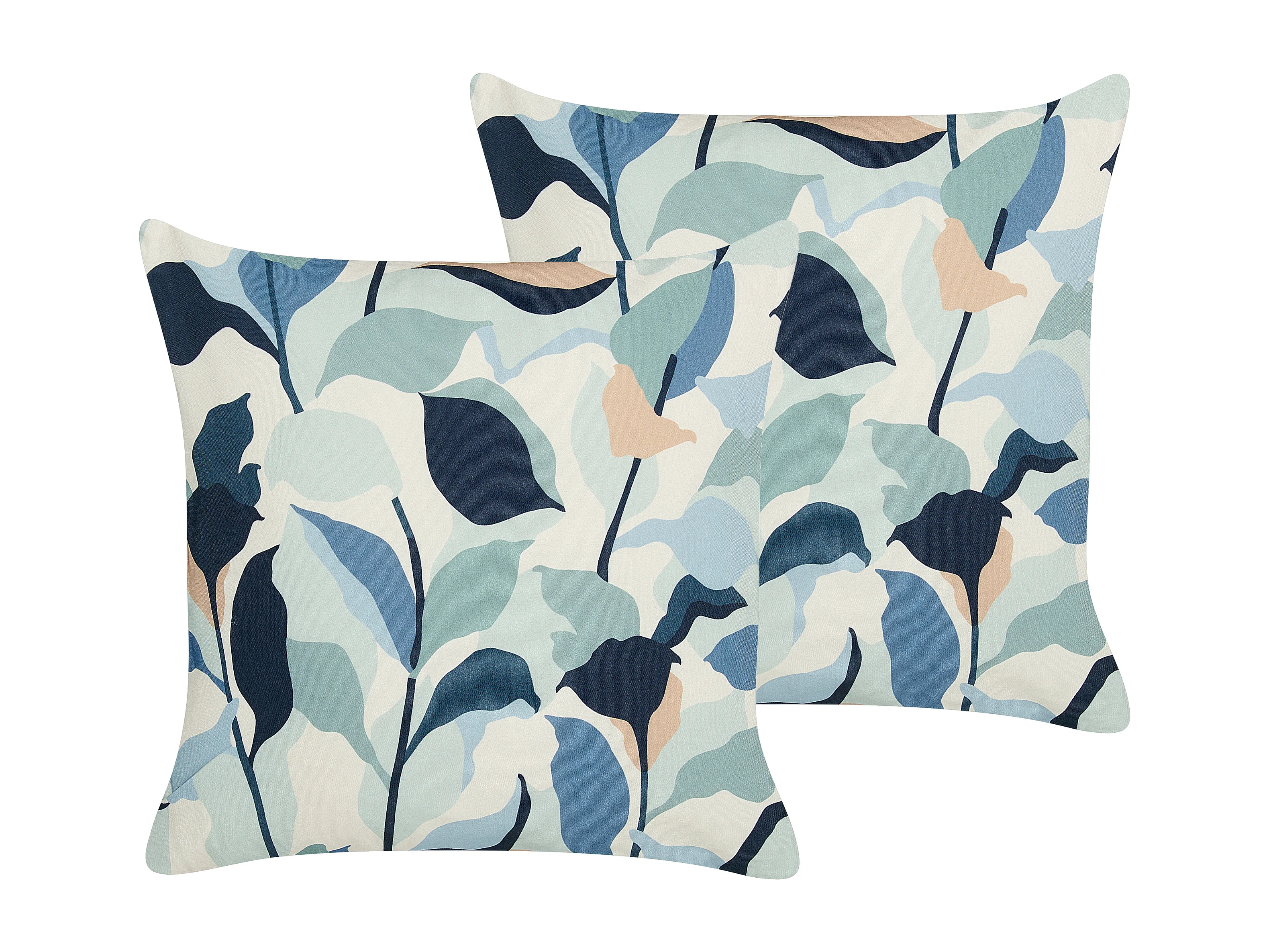 Lot de 2 coussins d'extérieur VEGLINO Motif de plante 45 x 45 cm Bleu