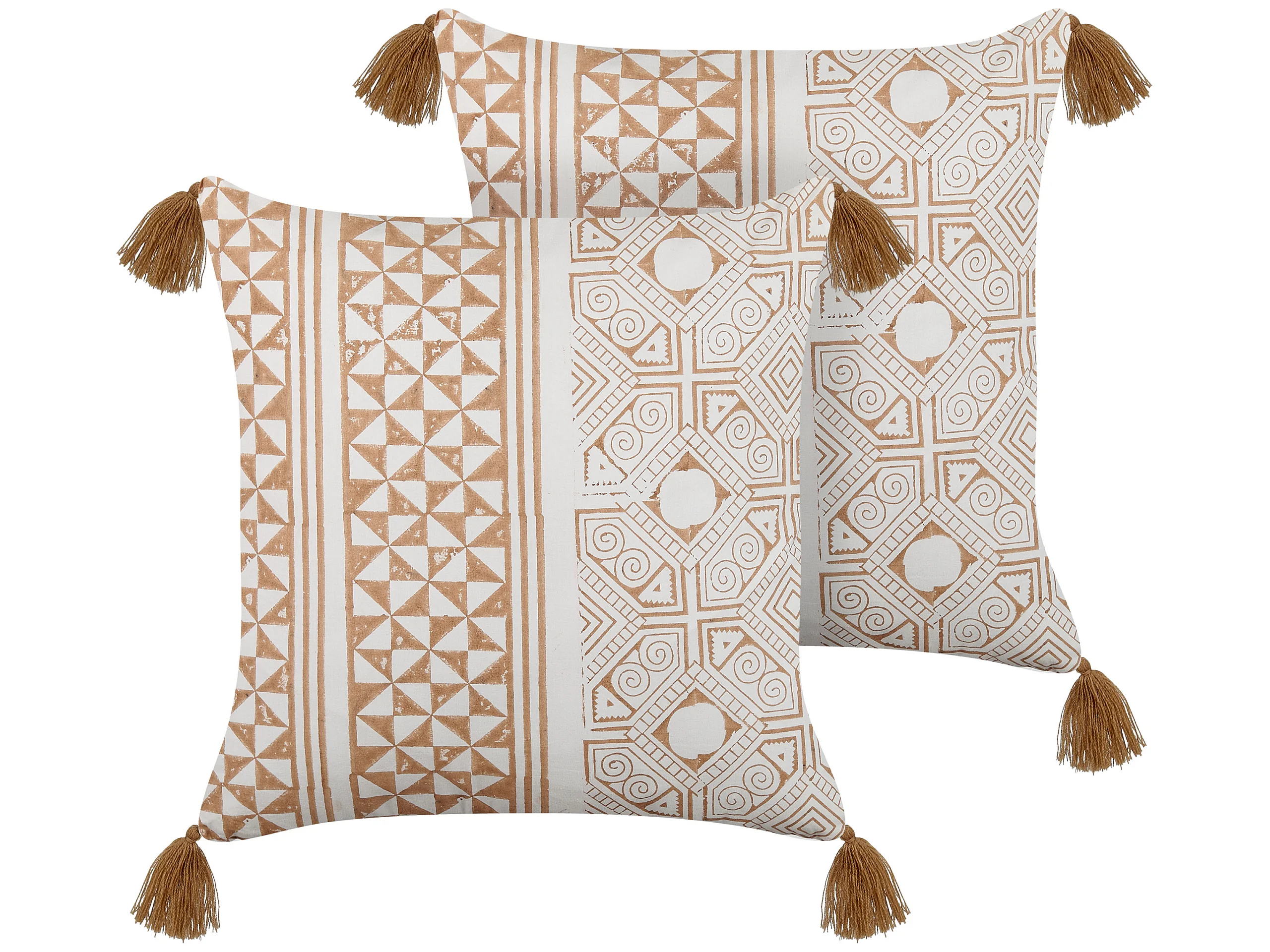 Lot de 2 coussins décoratifs BAMIAN Coton 45 x 45 cm Marron clair Motif géométrique