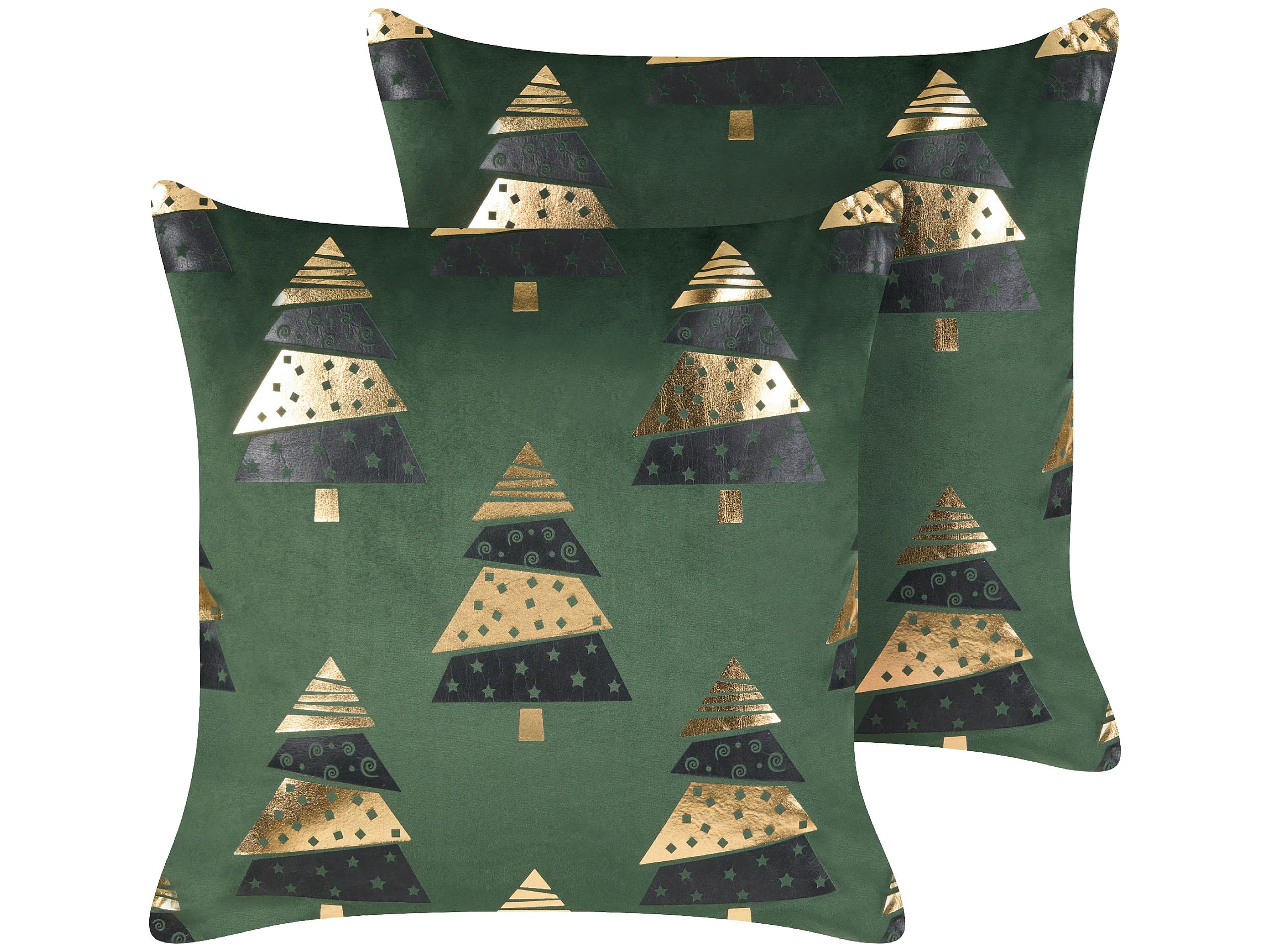 Lot de 2 coussins décoratifs GOLDSPRUCE Velours 45 x 45 cm Vert Motif de Noël