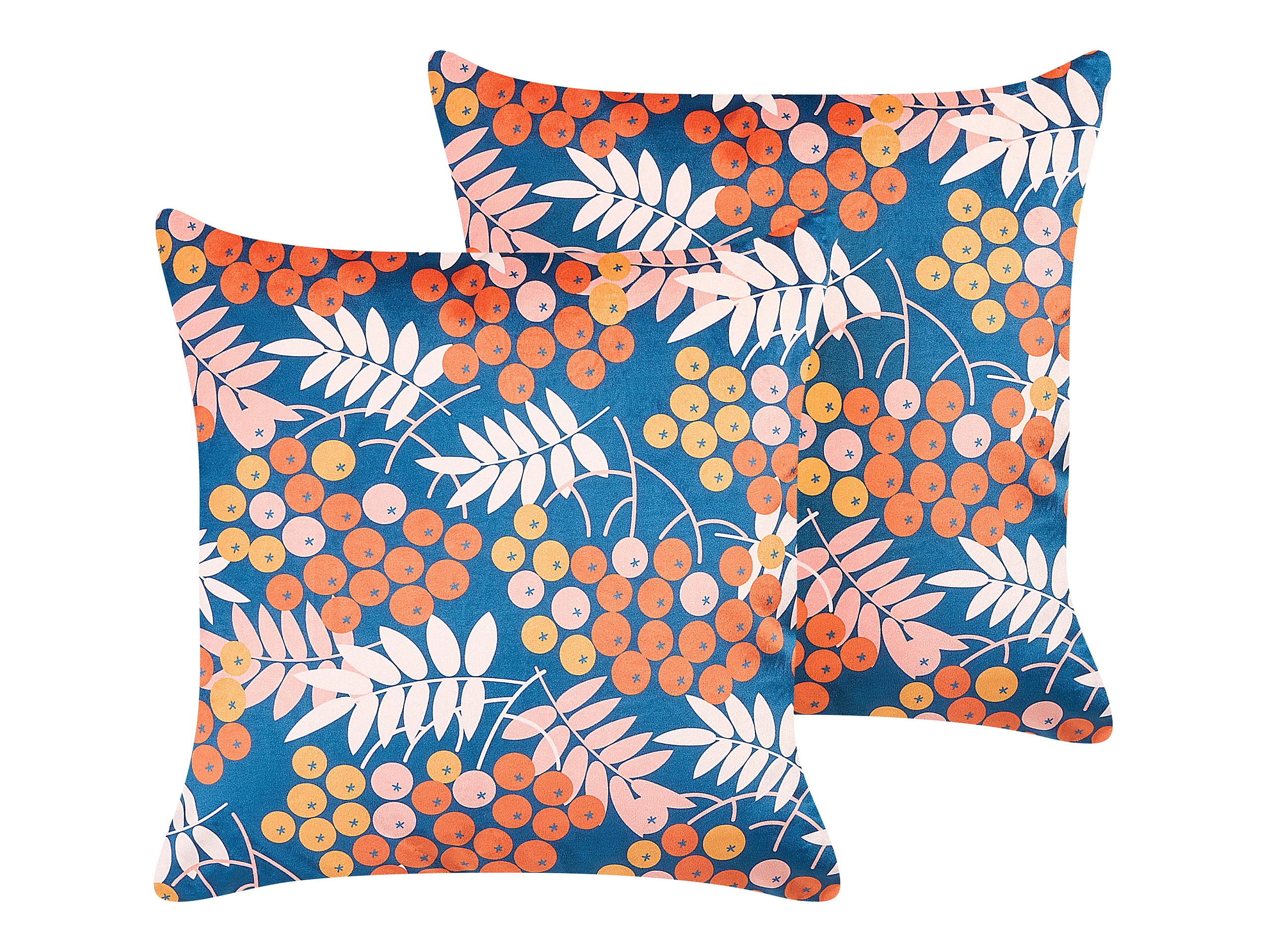 Lot de 2 coussins décoratifs MULLEIN Velours 45 x 45 cm Multicolore Motif de plante