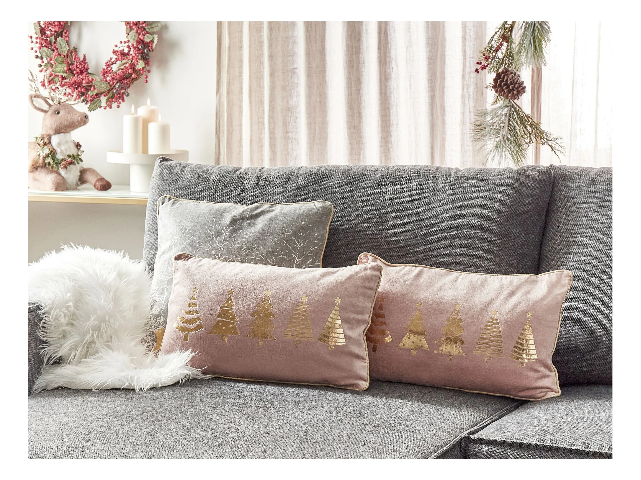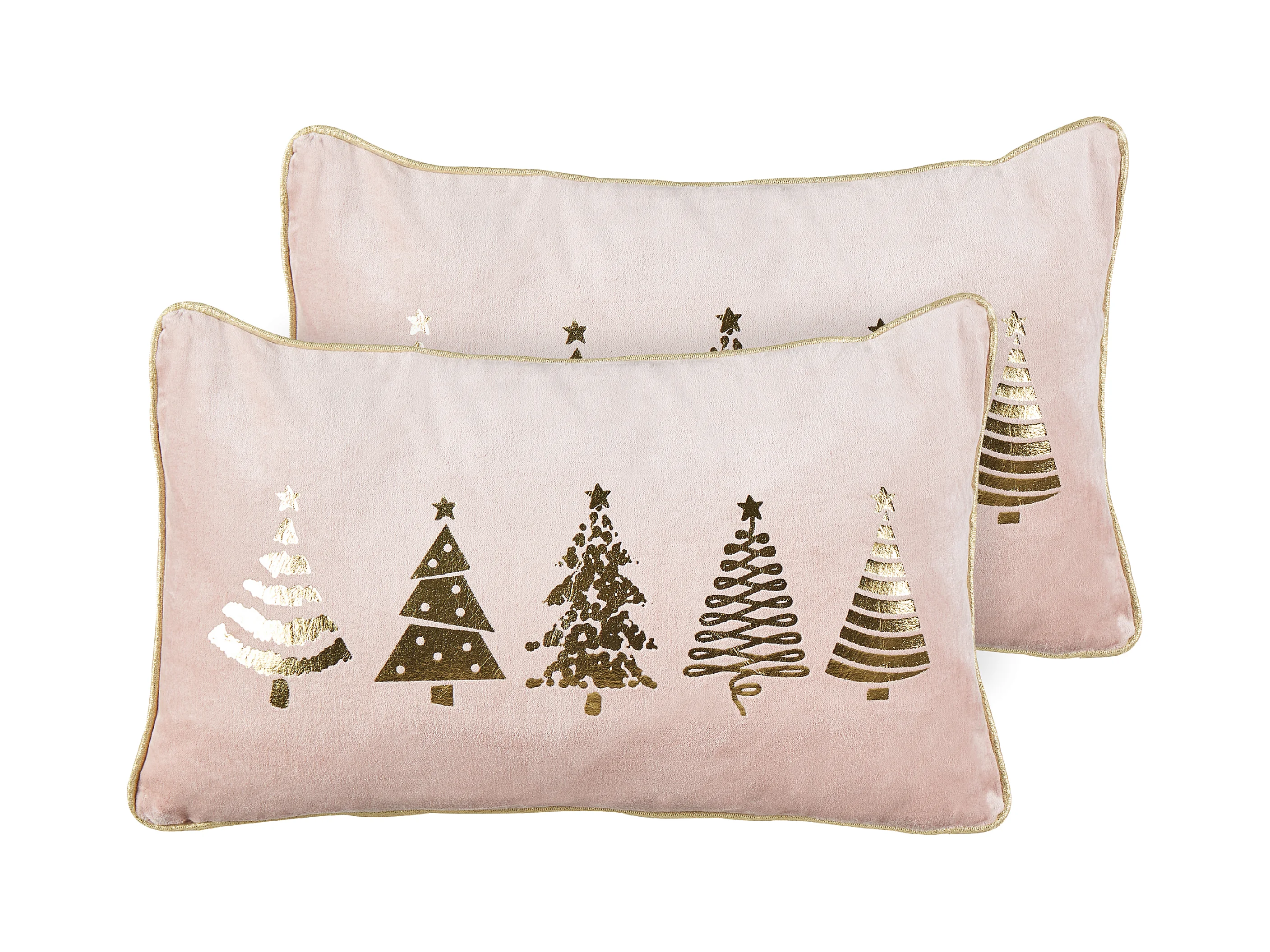 Lot de 2 coussins décoratifs ALSOBIA Velours 30 x 50 cm Rose Motif de Noël