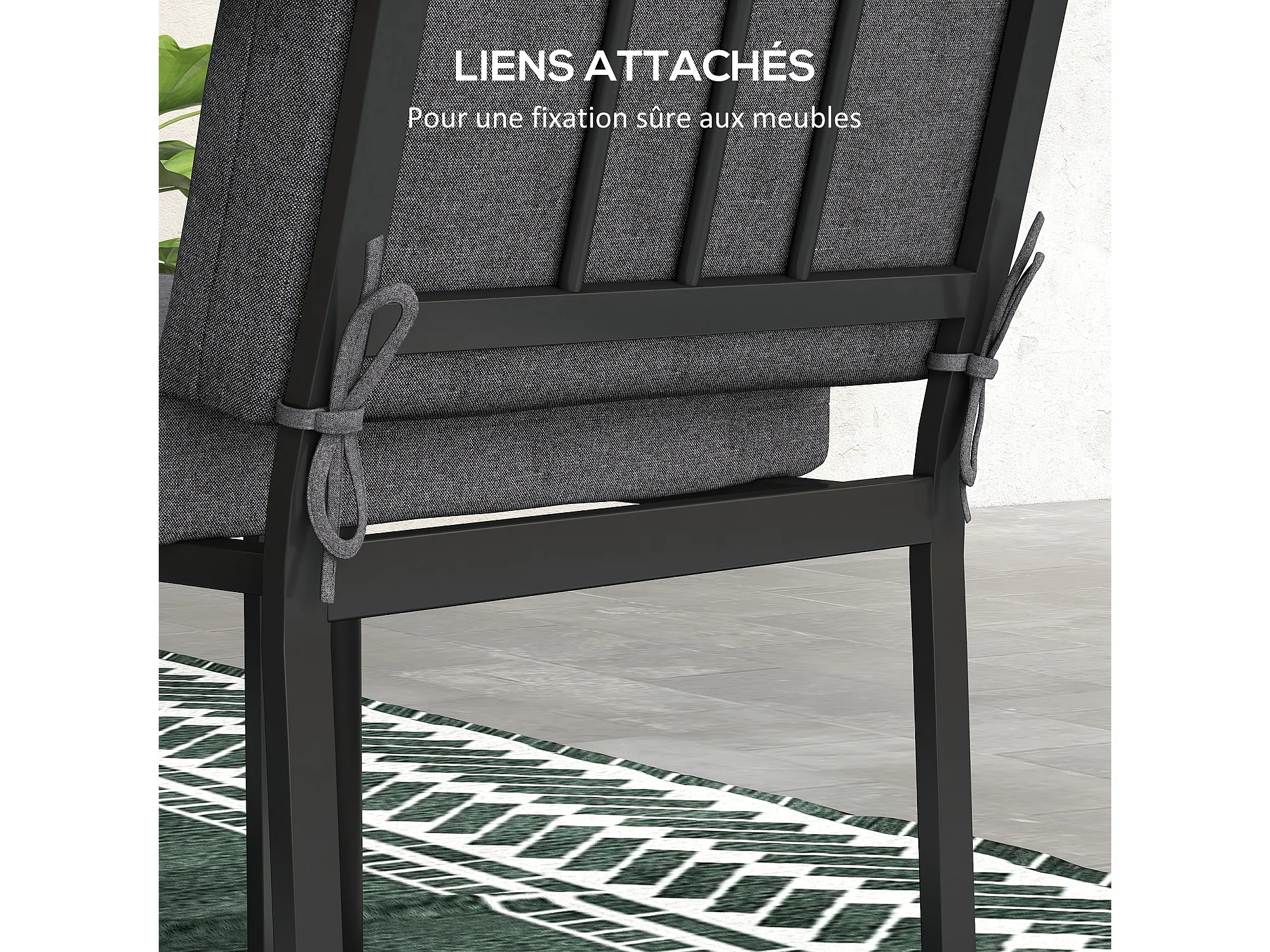 Lot de 2 coussins galettes de chaise de jardin - dim. 112L x 51l x ép. 8 cm - cordons attache - polyester déperlant anthracite